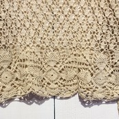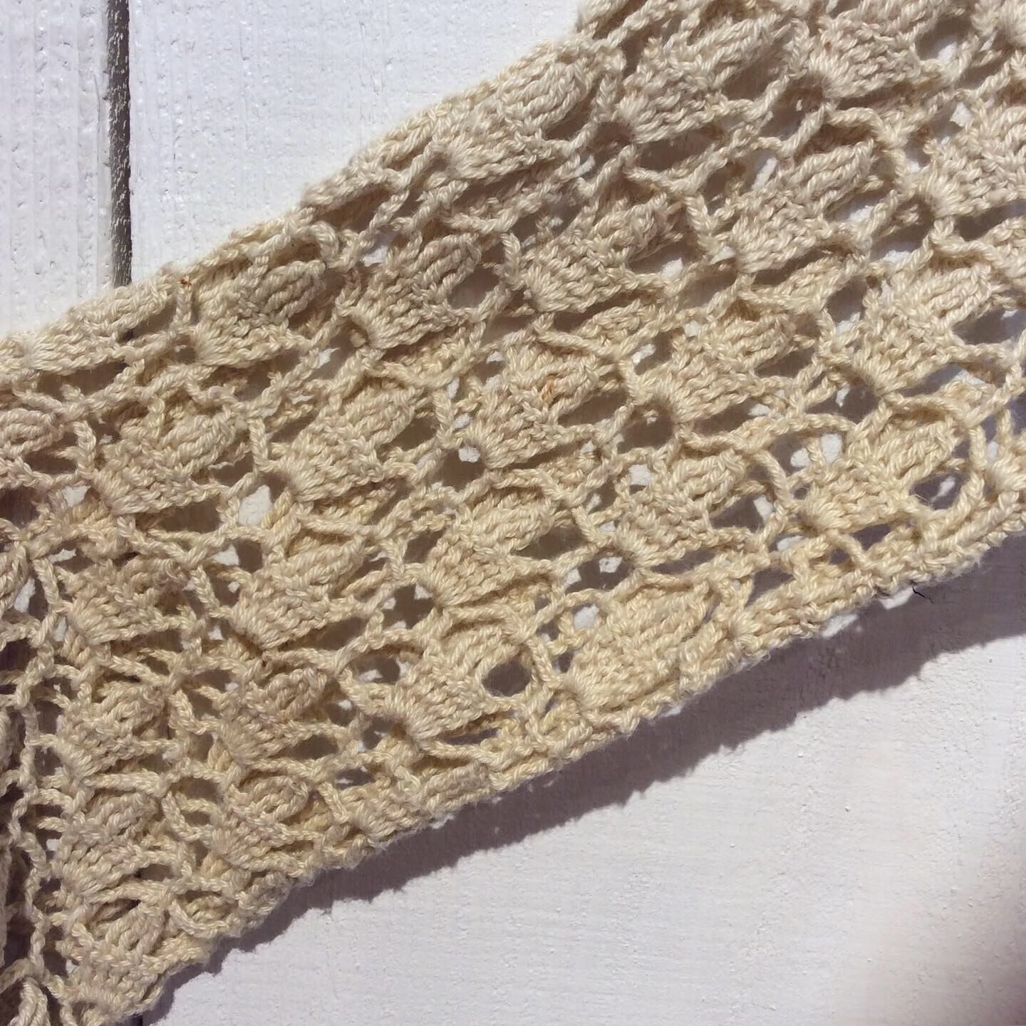 ライトベージュの細いコットン毛糸でかぎ編みされていて