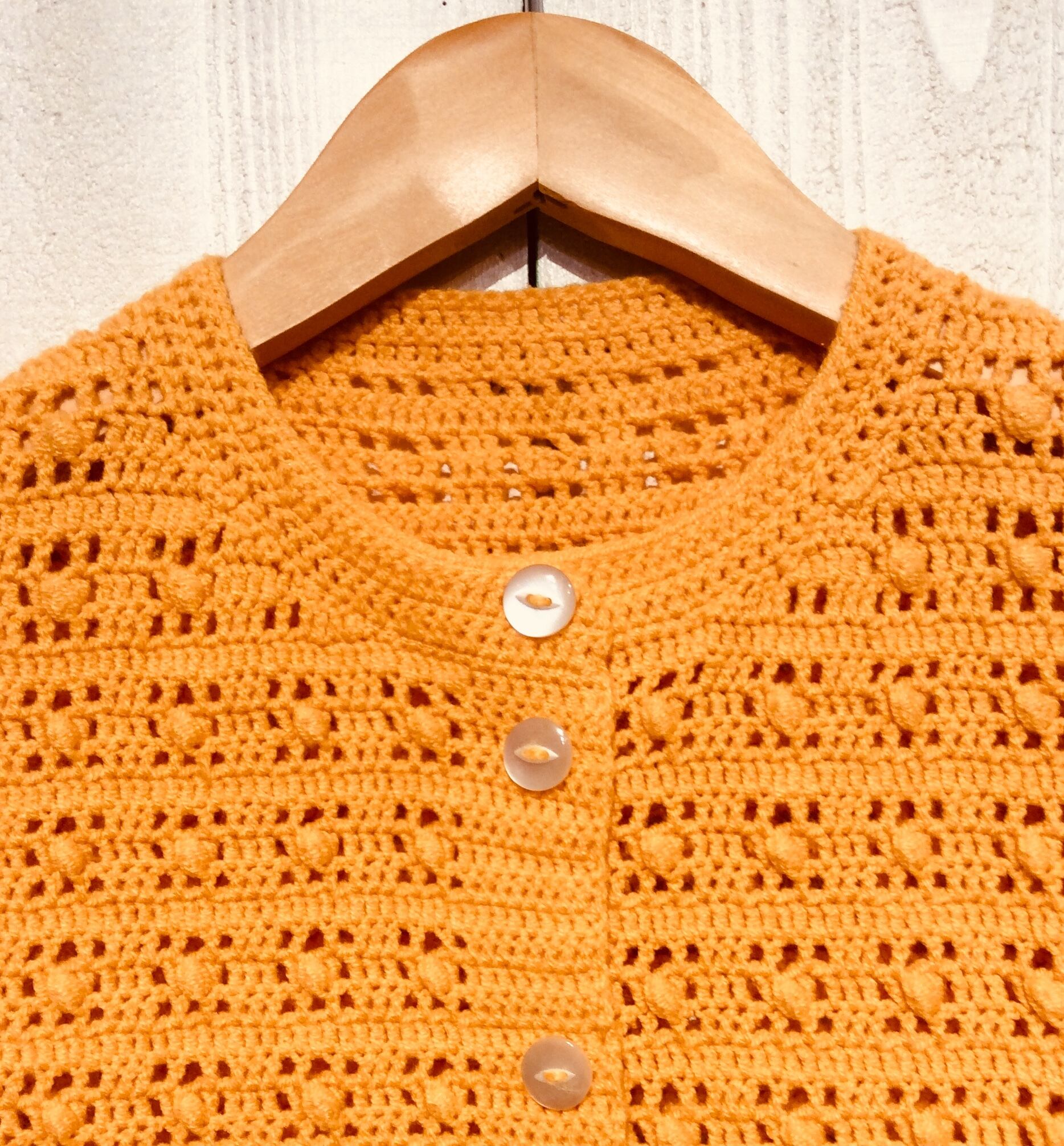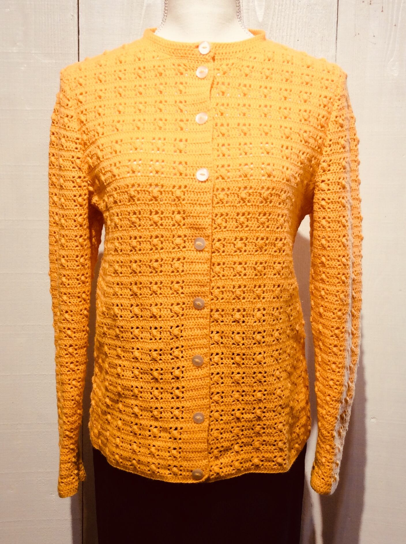 ヨーロッパから来ました、70年代〜の手編みのクロシェカーディガンになります。