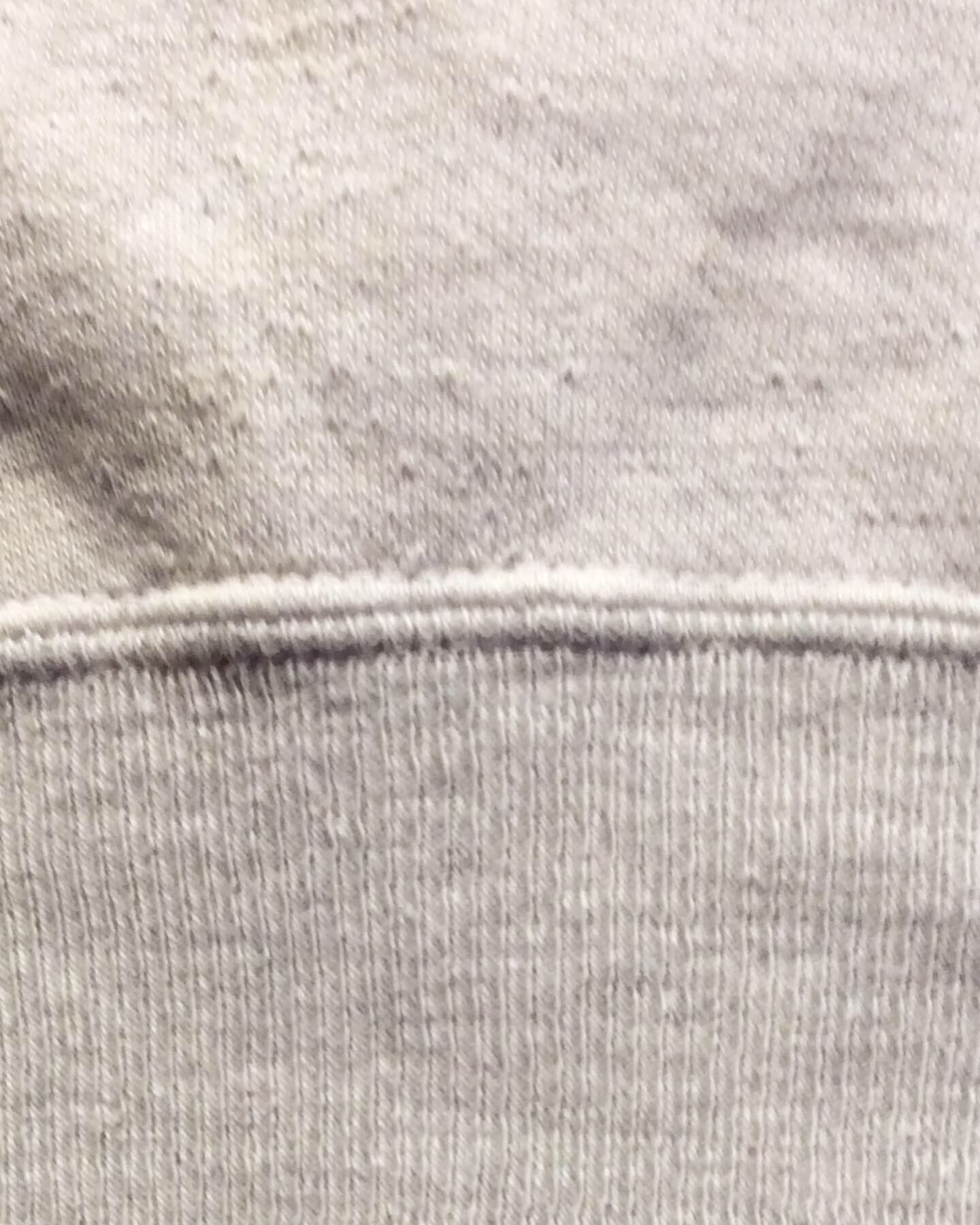 明るめの霜ふりグレーに、首まわりと両Vのガゼットと裾がグレーの、2色使いです。