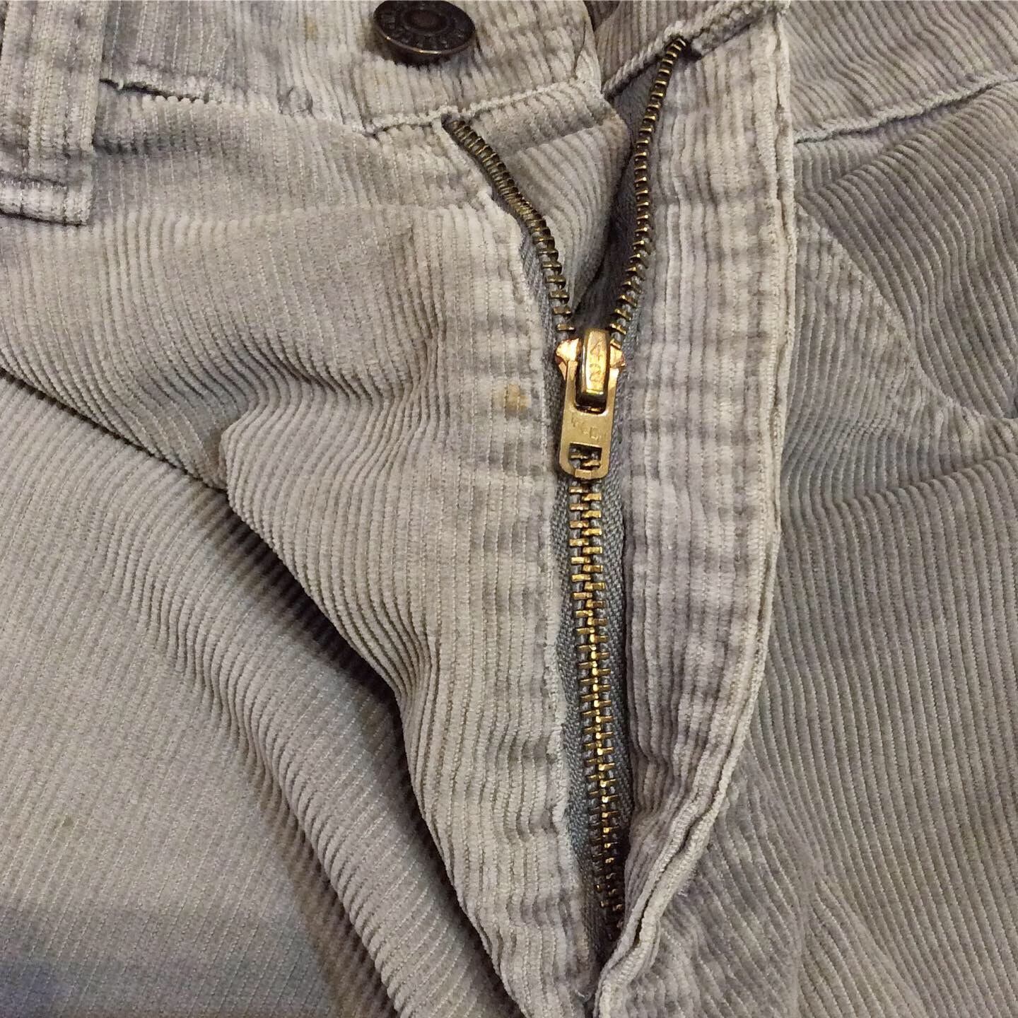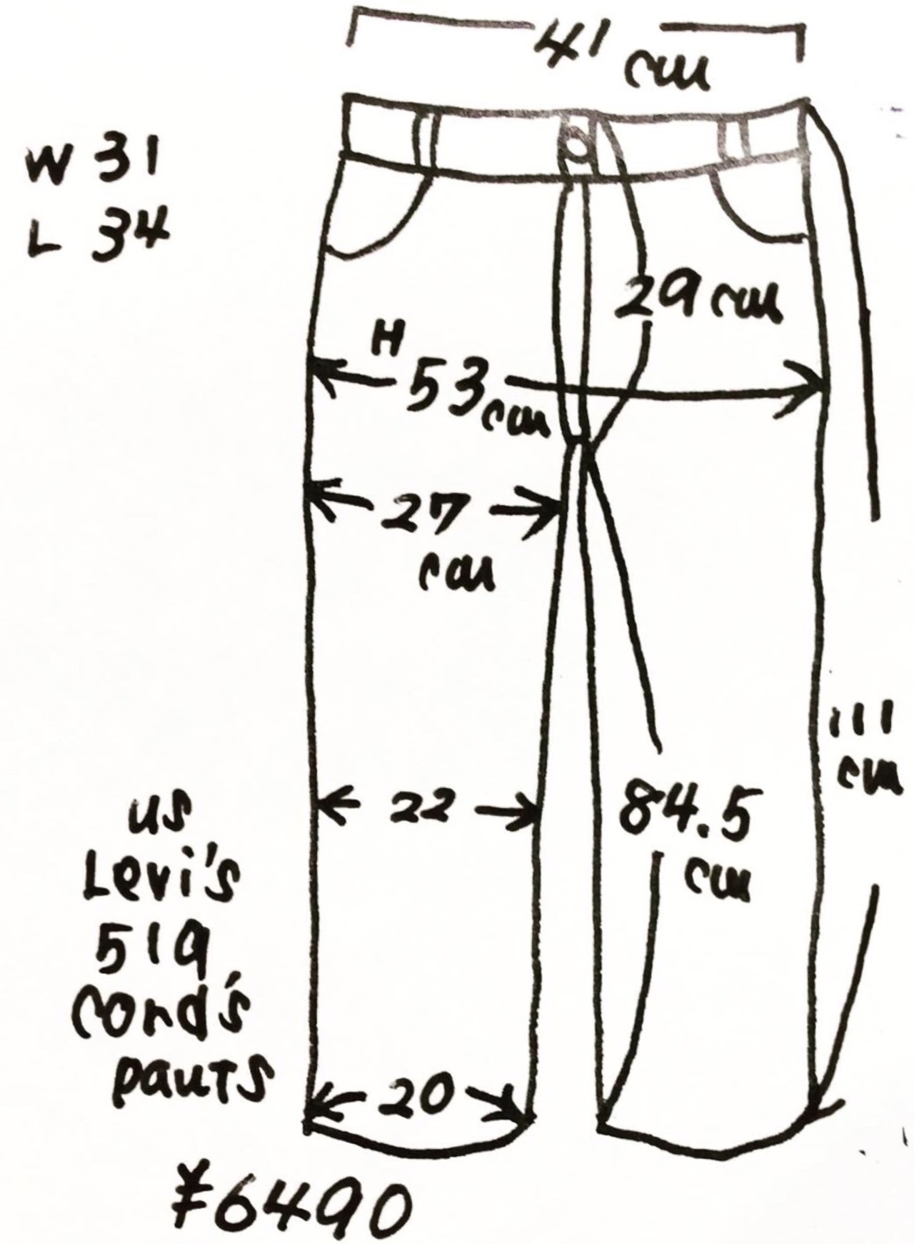 前側左太ももとひざ・後ろ側左足太ももと裾上23センチの所にサビ汚れとくすみ