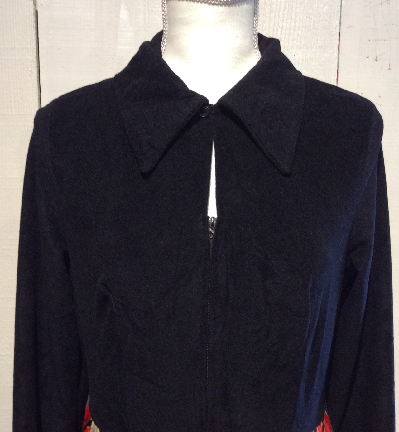 トップスの黒い部分がベロアとフリースの中間の様な質感の生地の組み合わせのワンピースです。