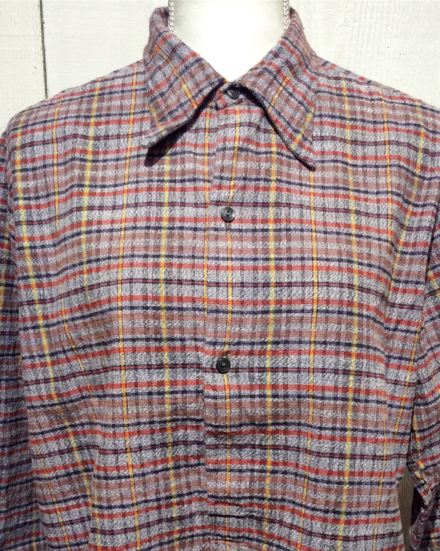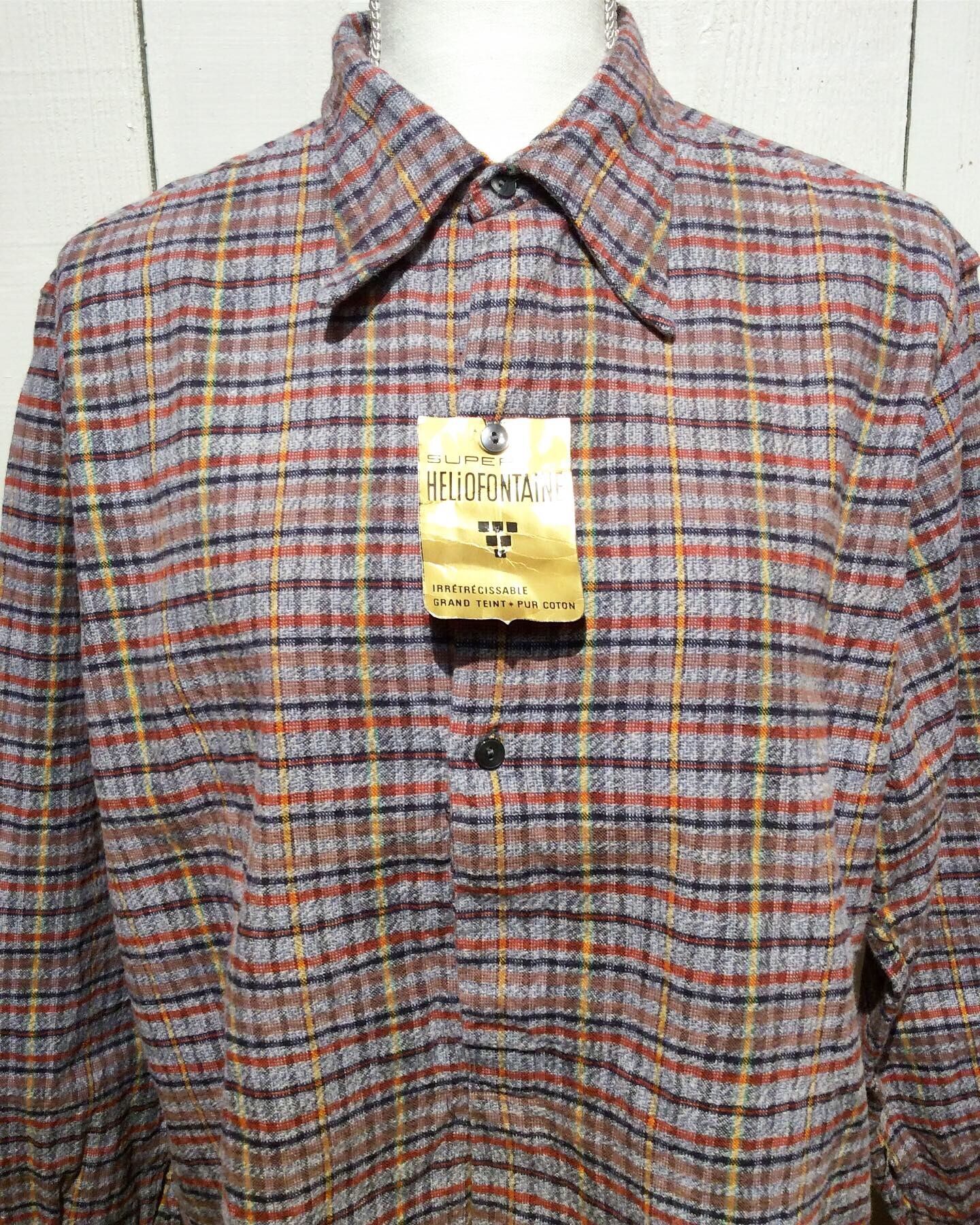 ヨーロッパ製の、チェック柄のヴィンテージグランパシャツになります。
