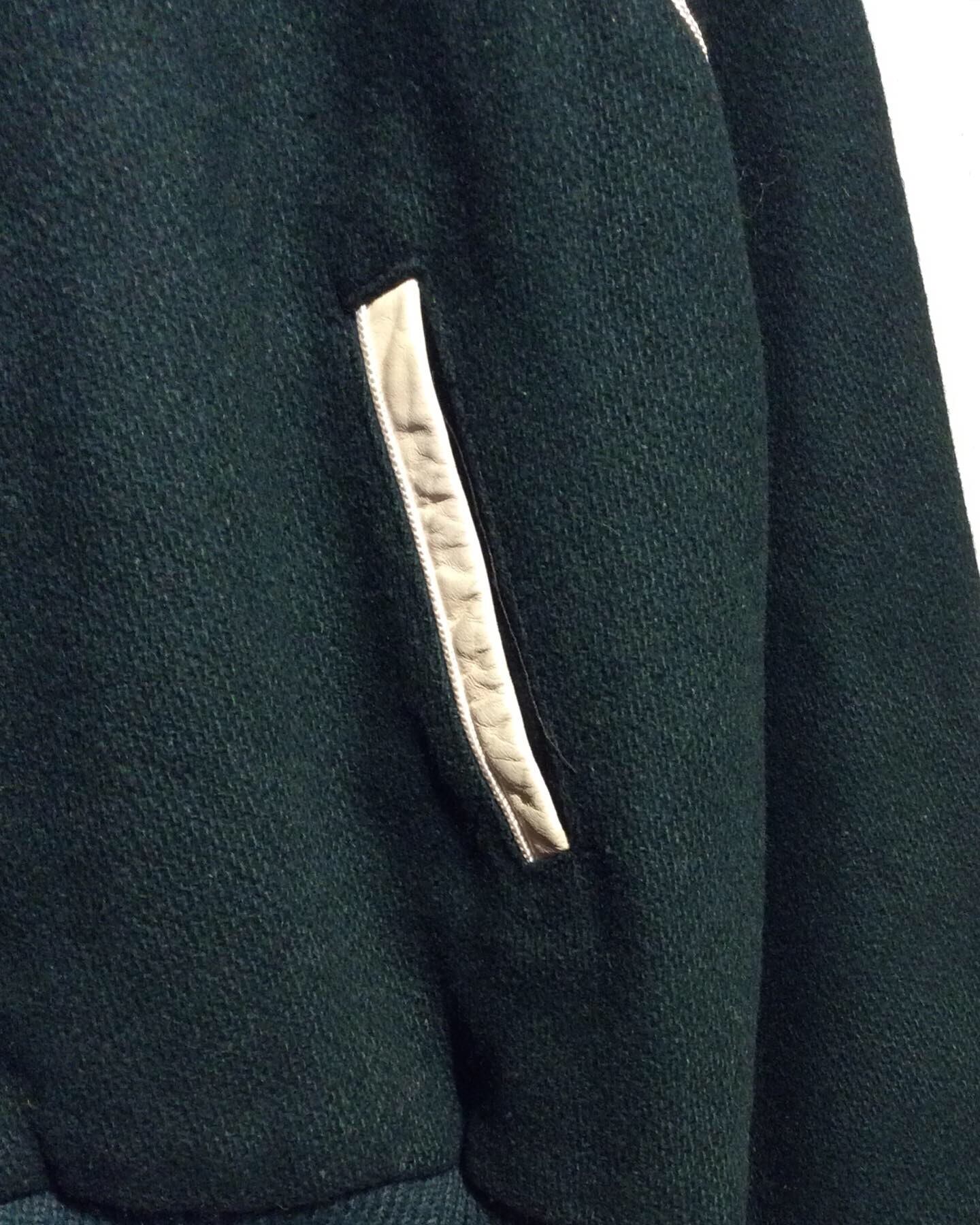 袖の付け根とポケット口が、オフホワイトの本革のタイプです。