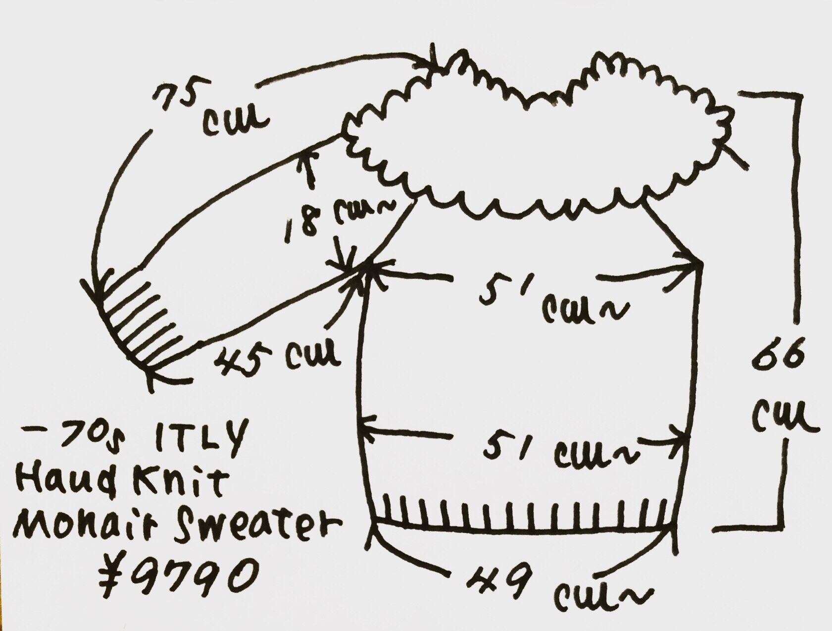 イタリア製の、〜70年代頃の、手編みのモヘアのセーターになります。