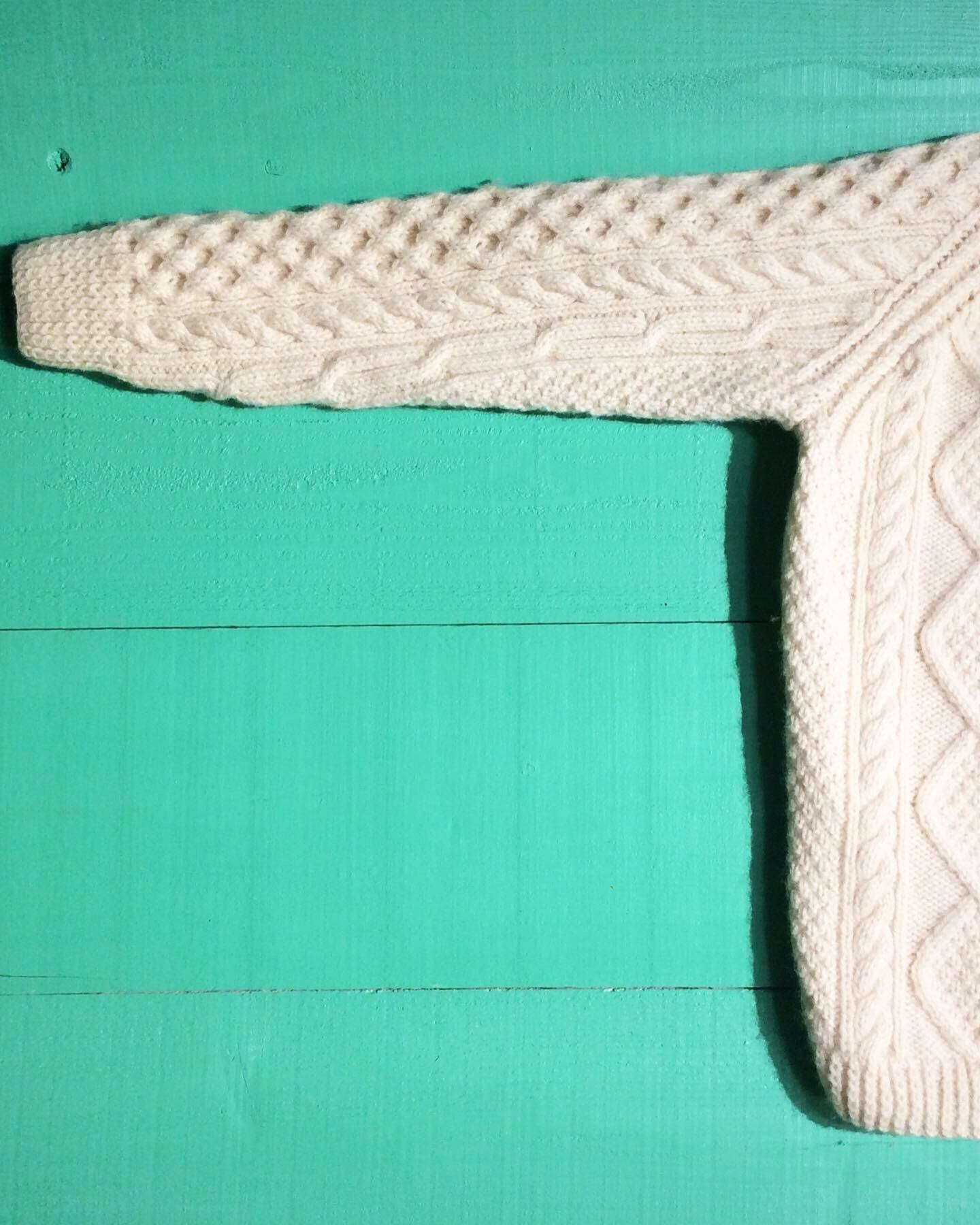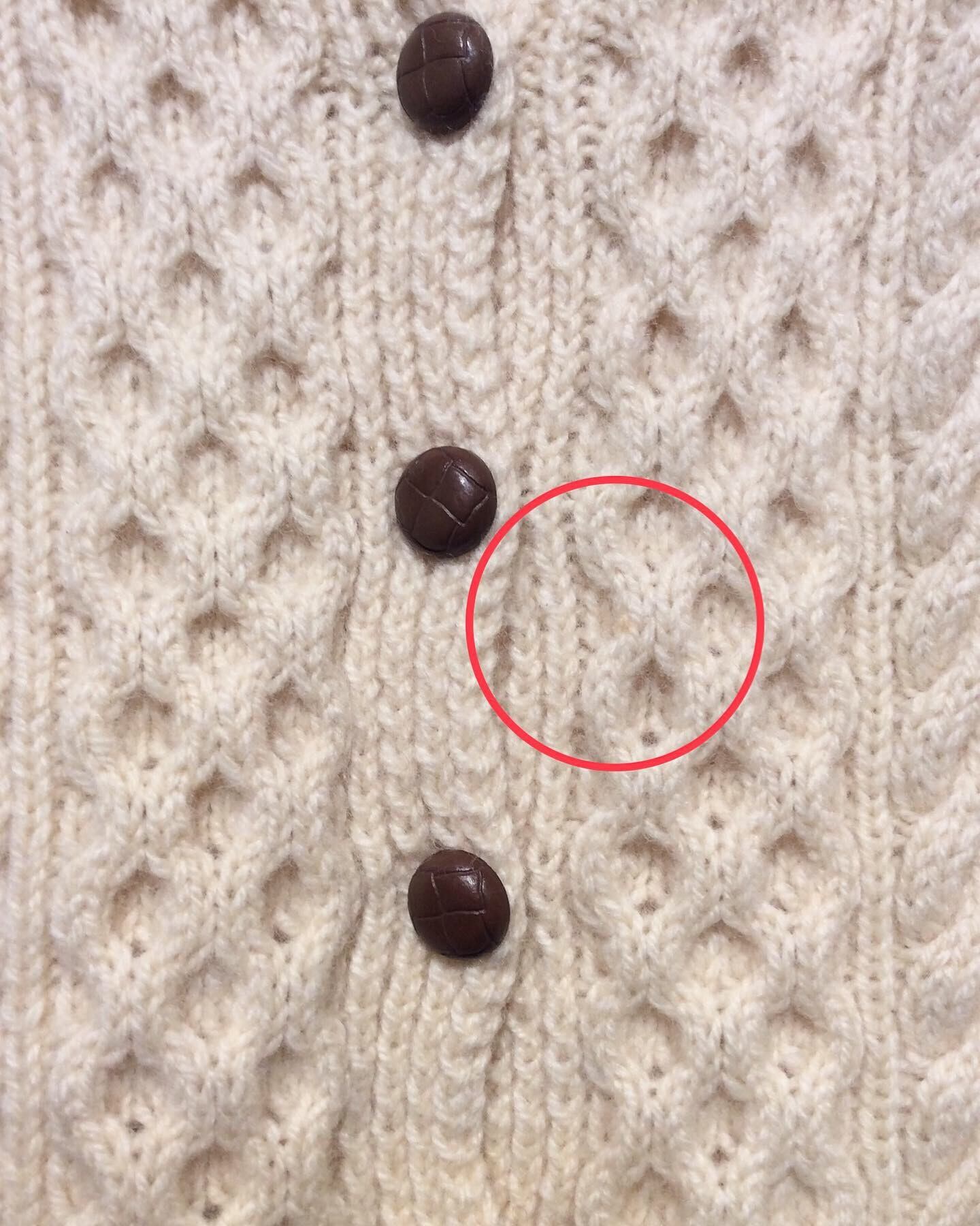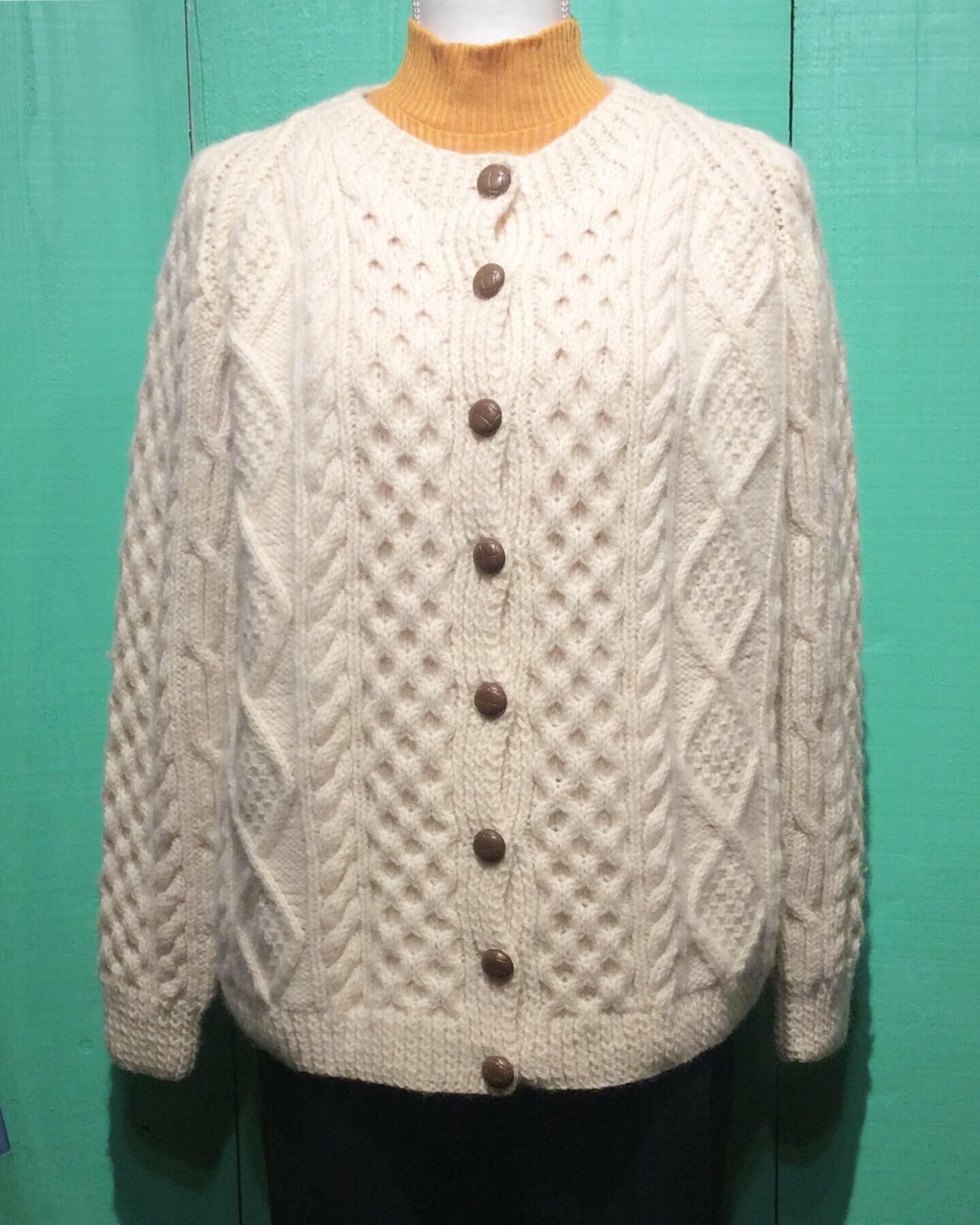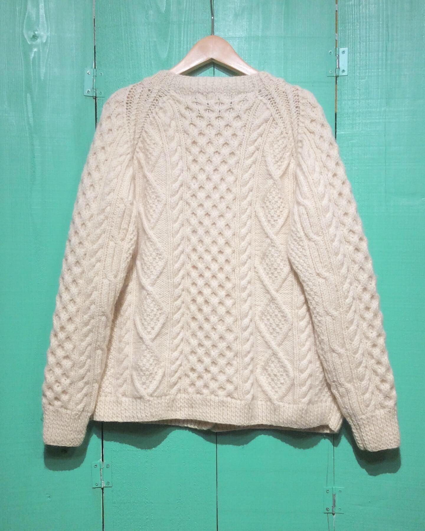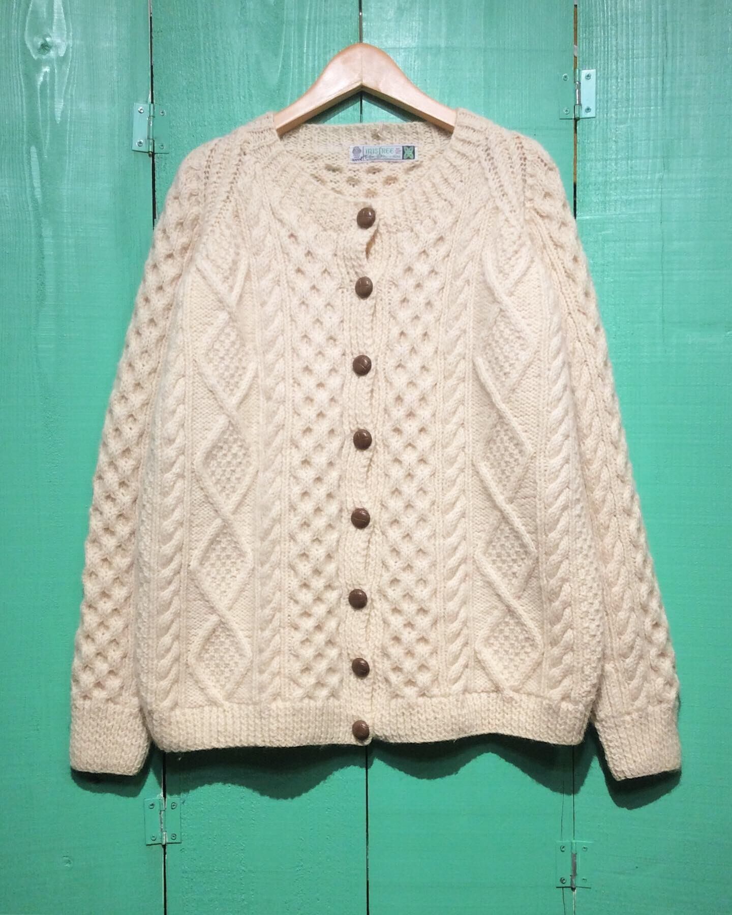 アイルランド製 70年代〜の 手編みのフィッシャーマンカーディガンになります。