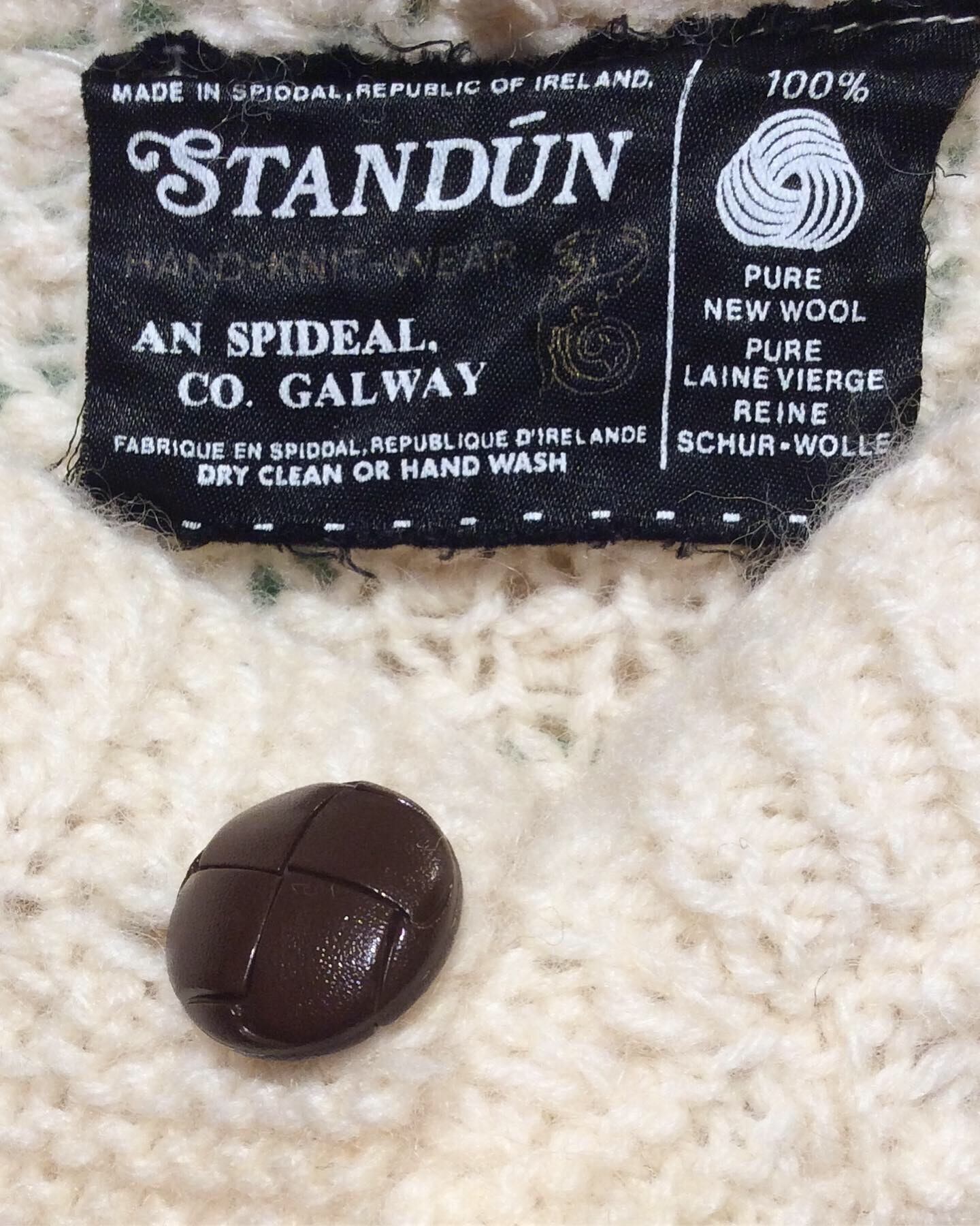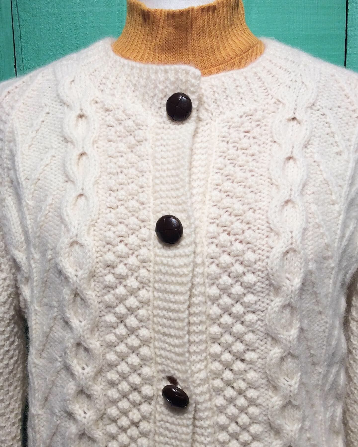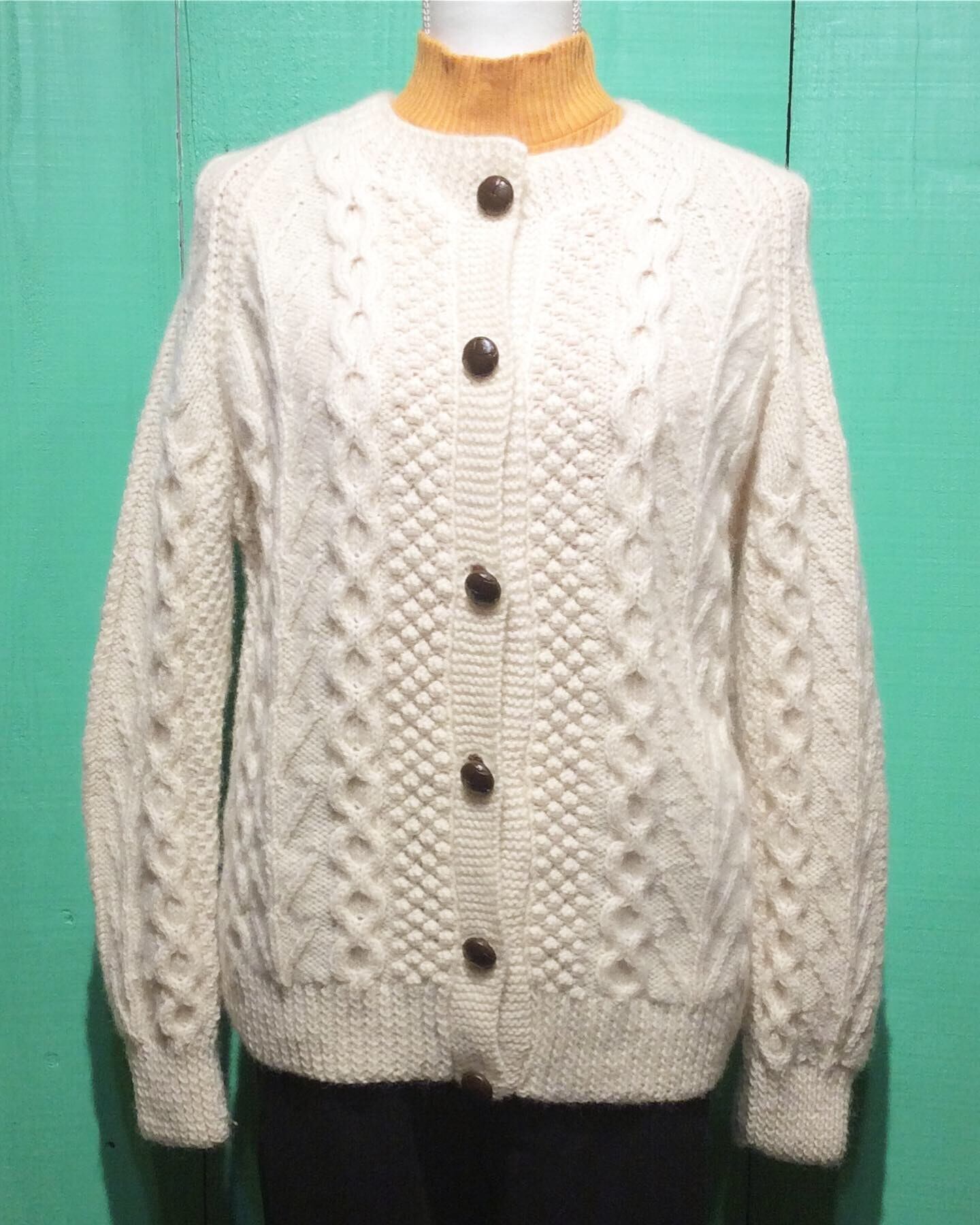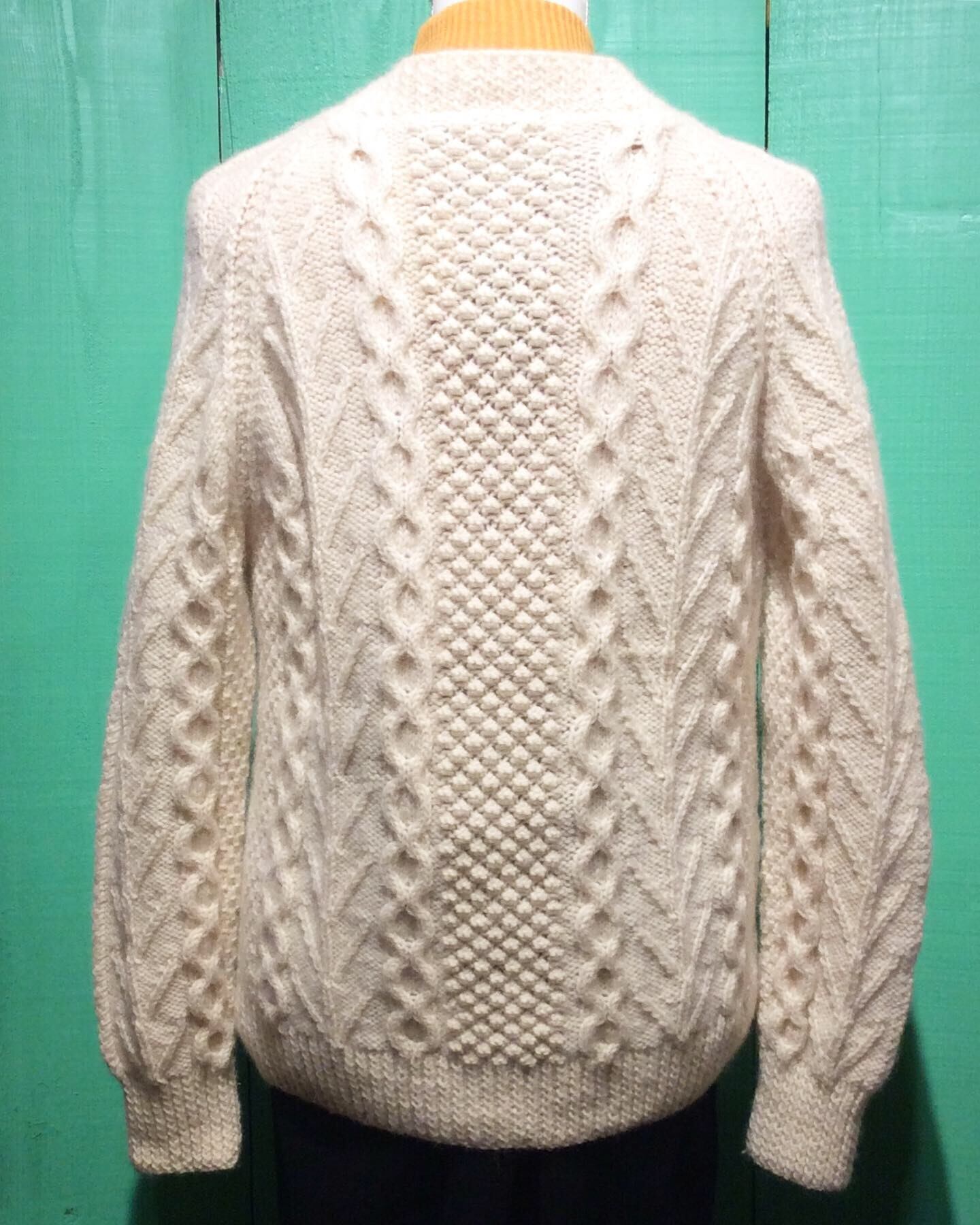 アイルランド製 70年代〜の 手編みのフィッシャーマンカーディガンになります。