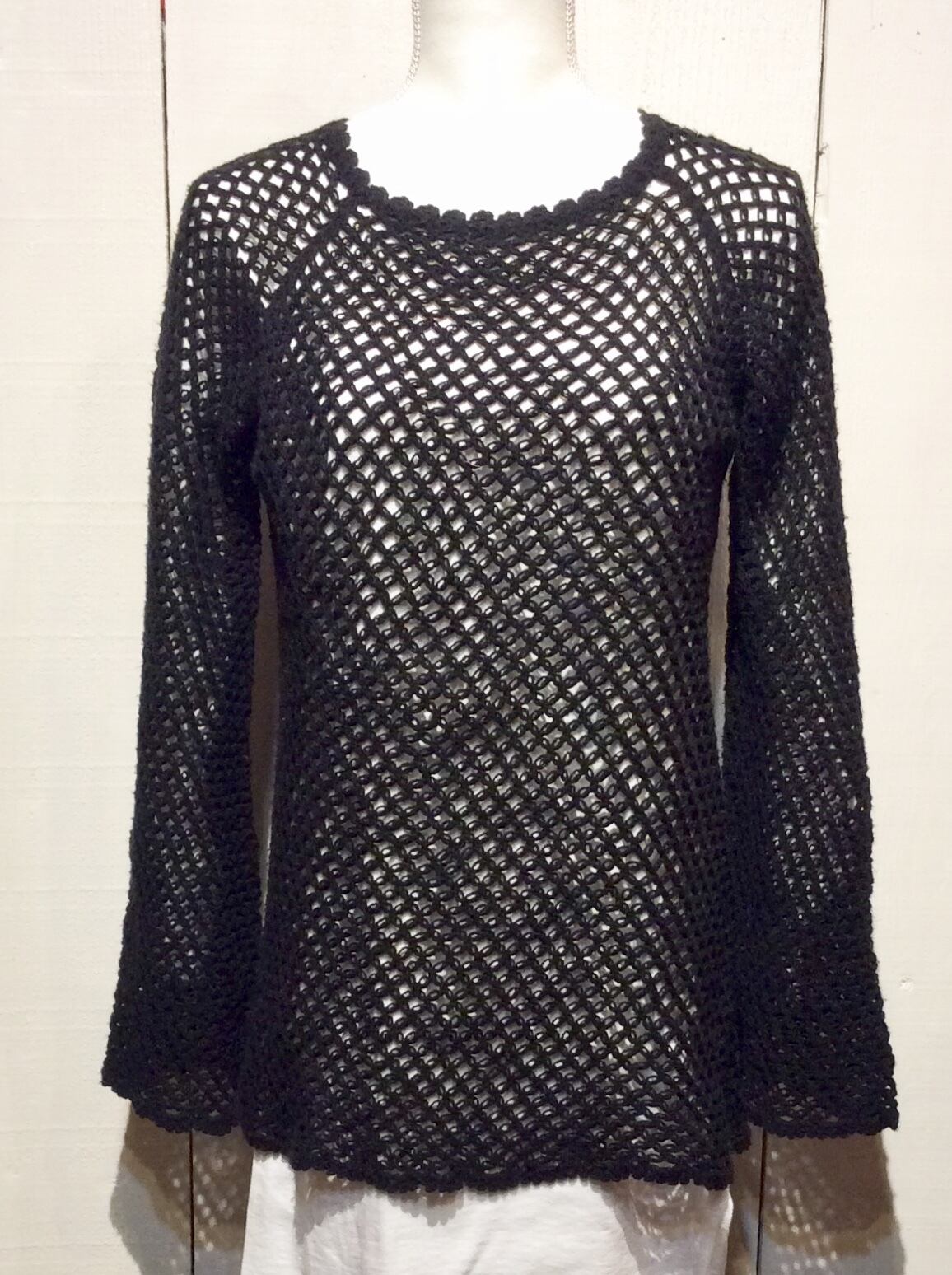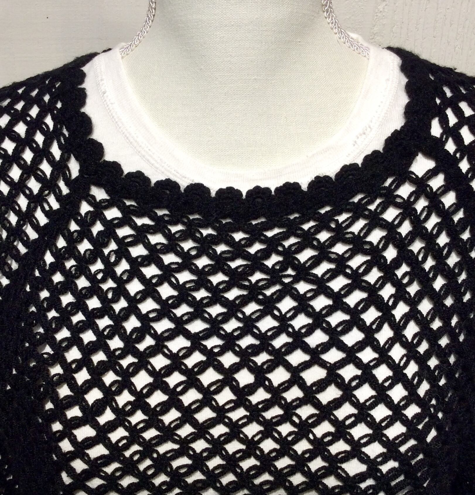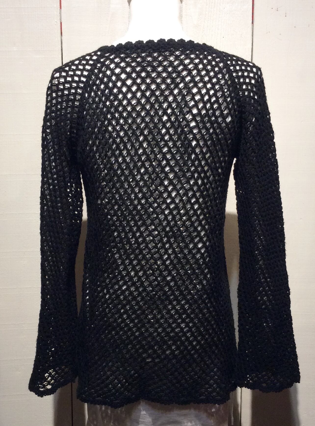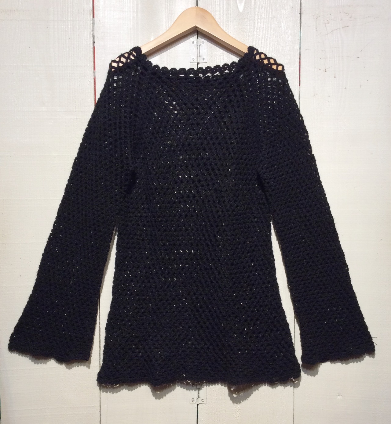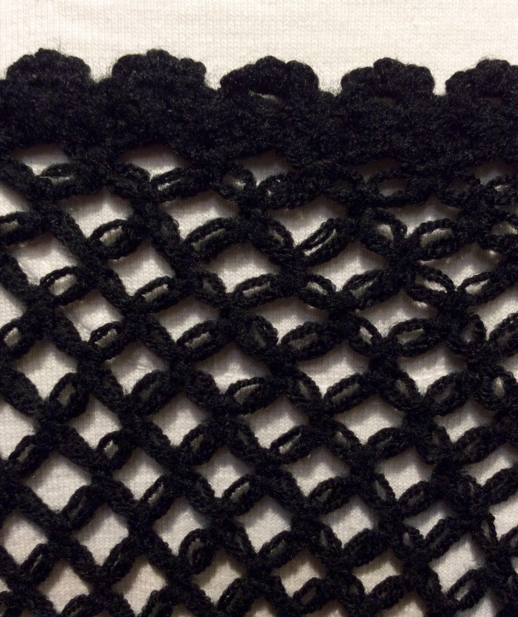 細糸のソフトなアクリル毛糸で細かく鍵編みされています。