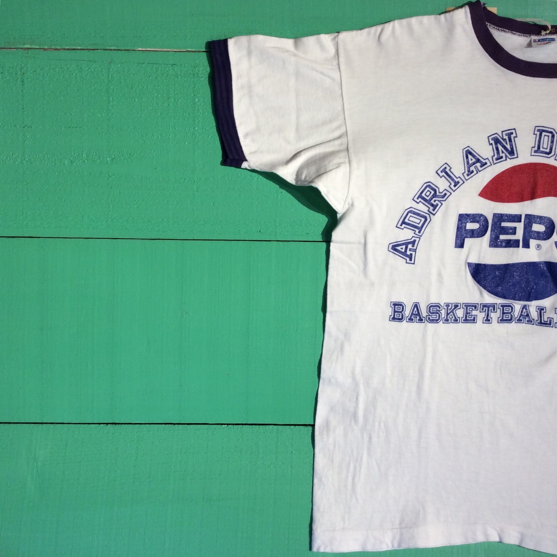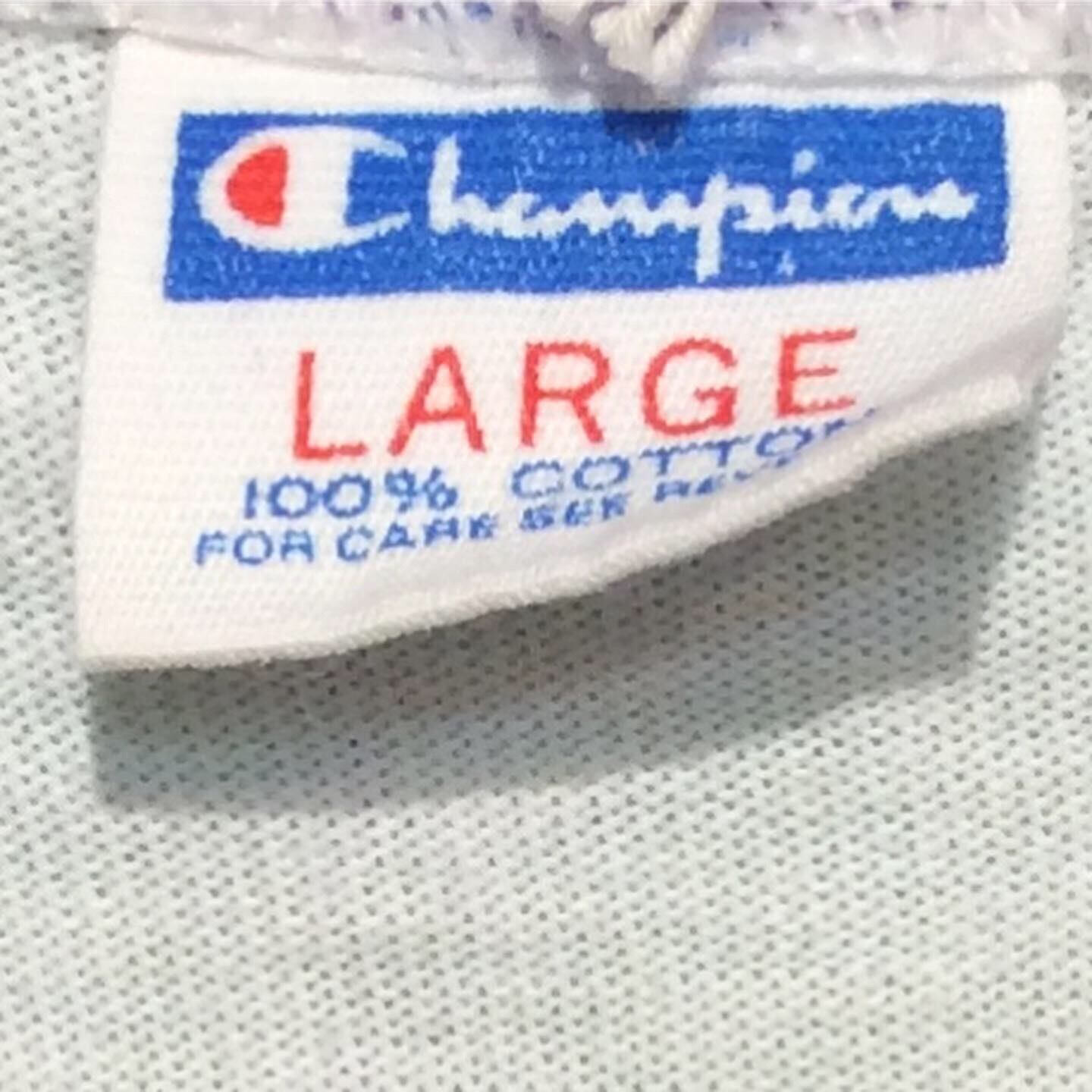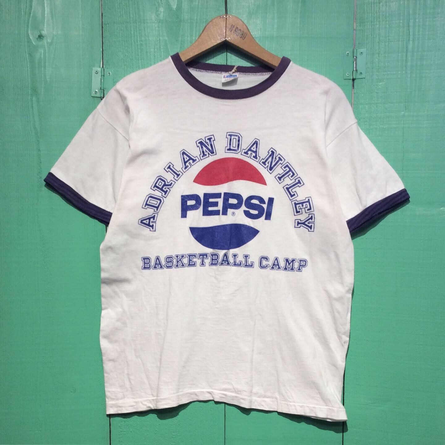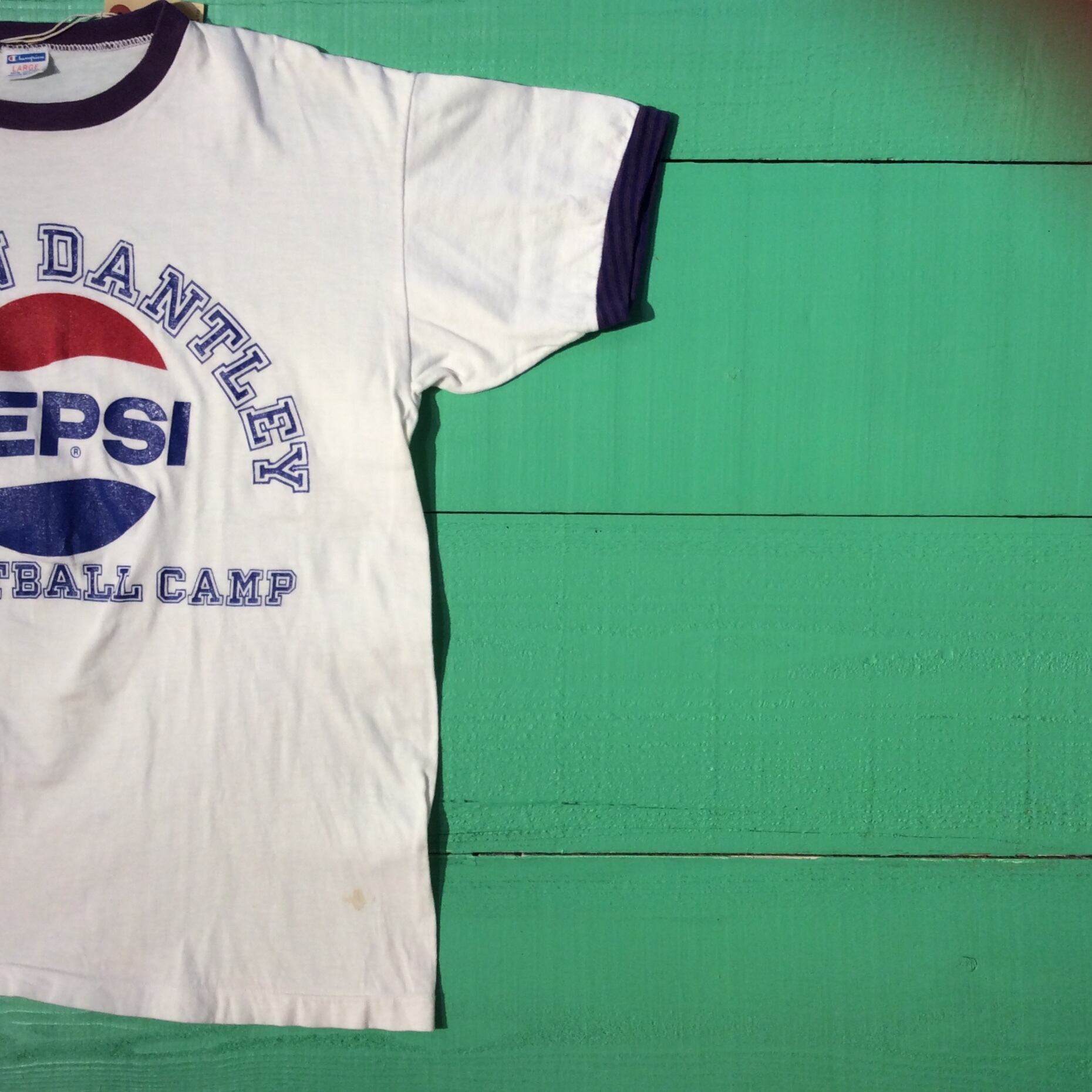 色は 白で、首と袖口まわりがおそらく紺色が色抜けしたパープルのトリムで、