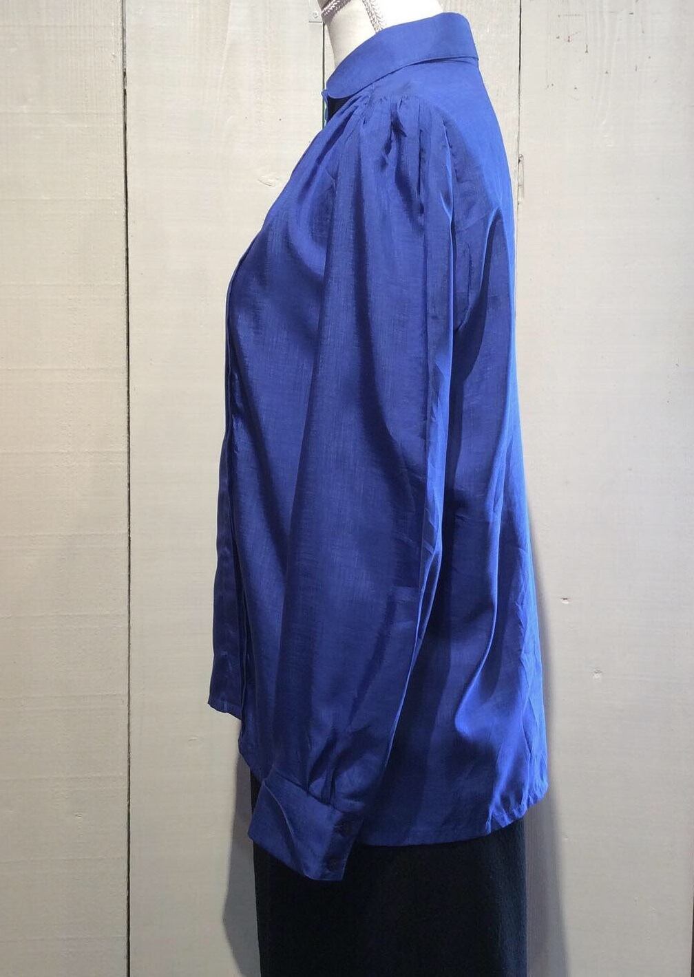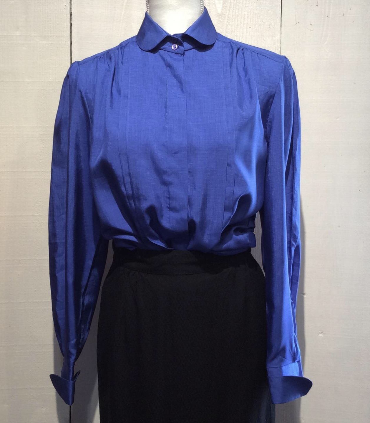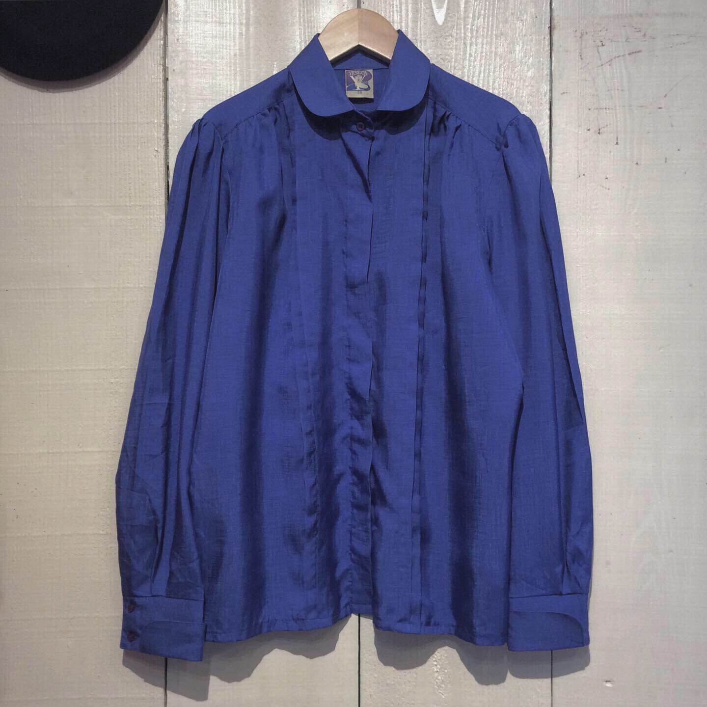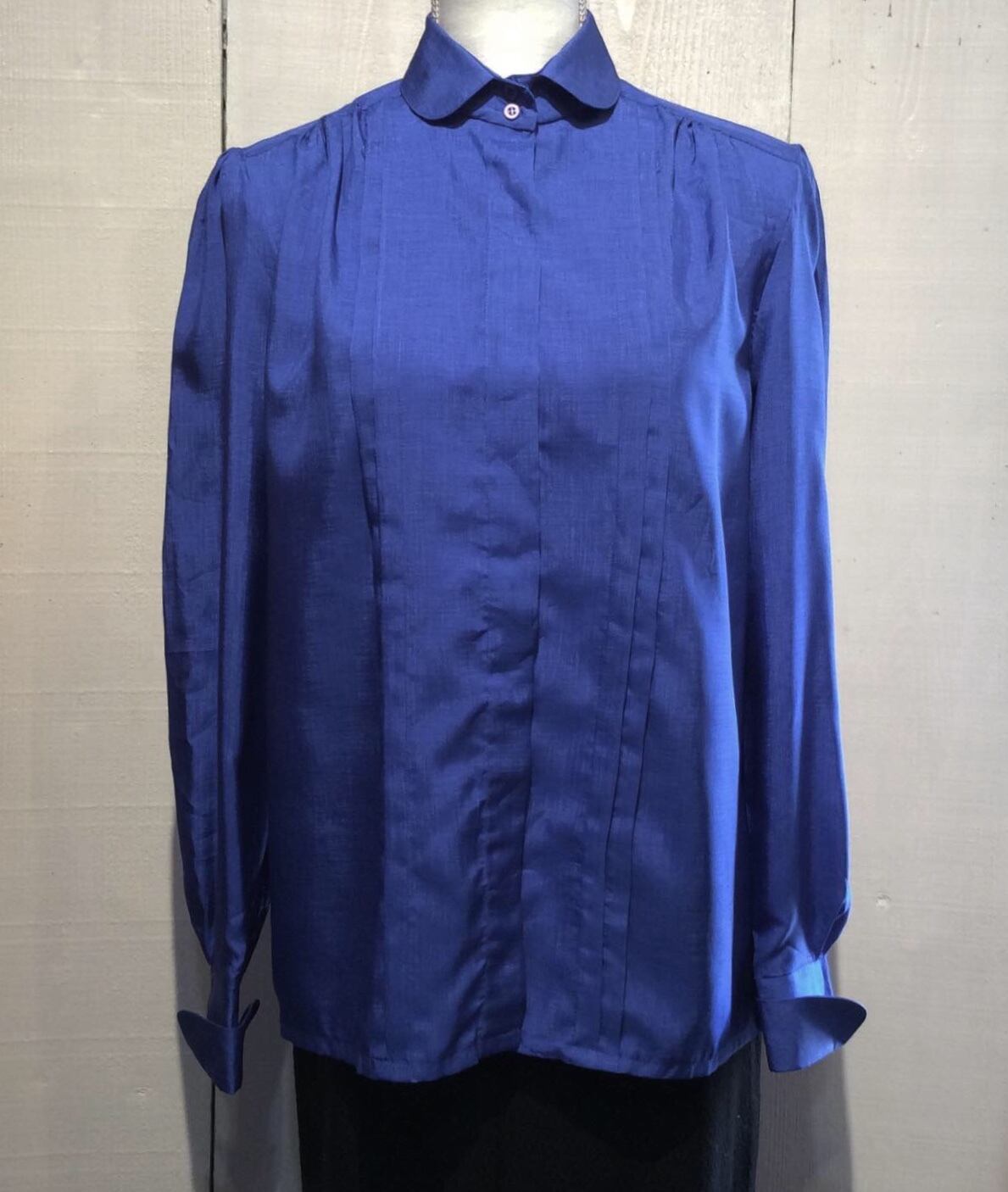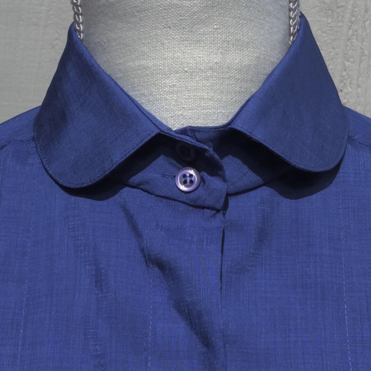 立ち襟ぎみで、丸みのある襟と カフスのデザインが可愛いブラウスです。