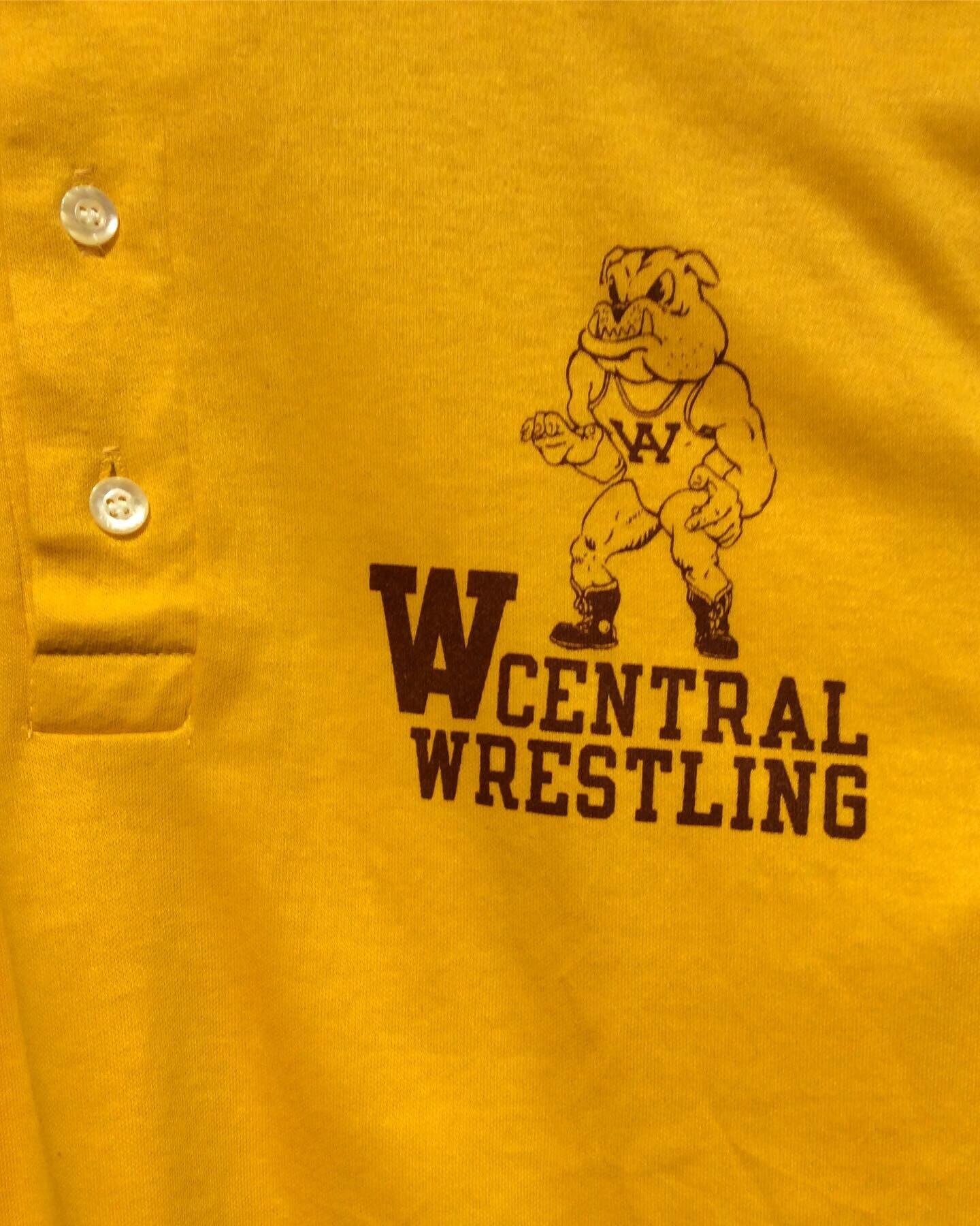 左胸プリントは、茶色の染み込みの様なプリント色は濃い黄色