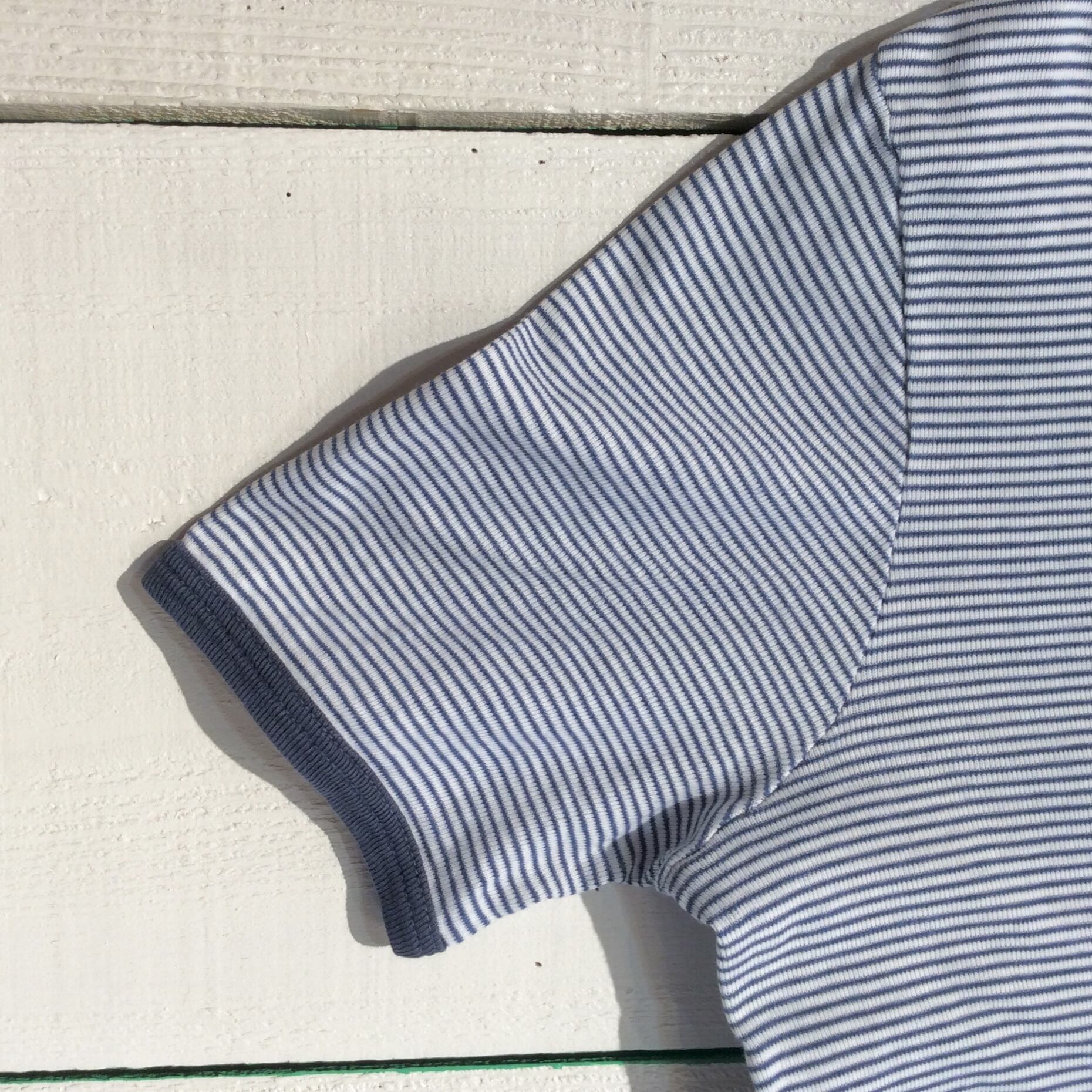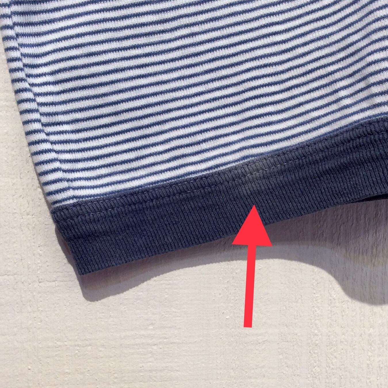 白地に紺色のボーダーの線は、細かい1.5ミリ幅の線です。