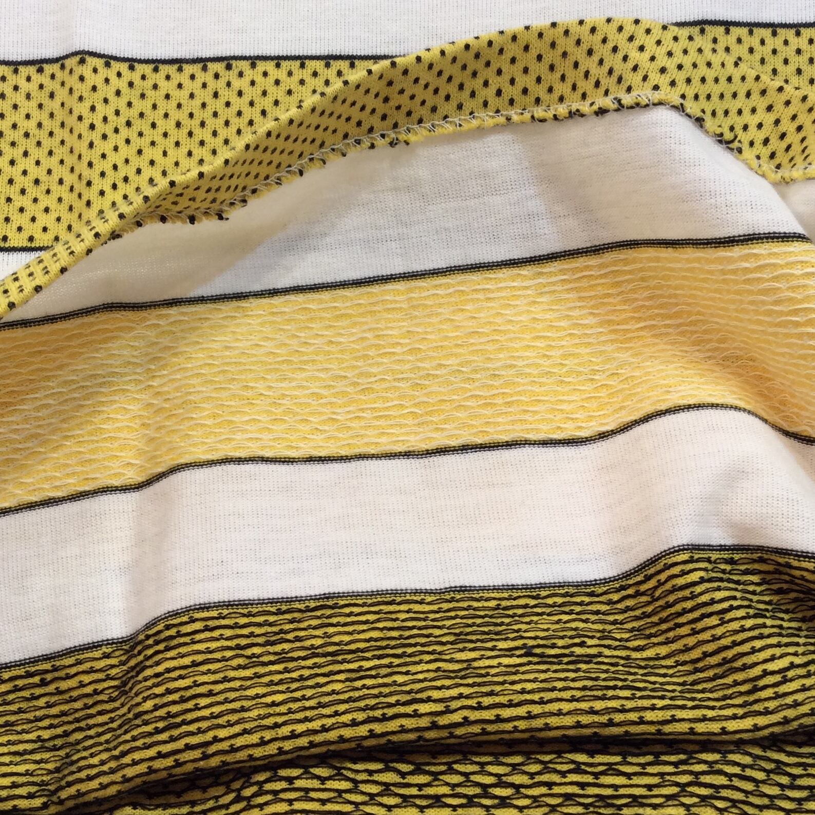 色は、白・明るい黄色・黒のボーダーで、水玉部分は、黒・白です。