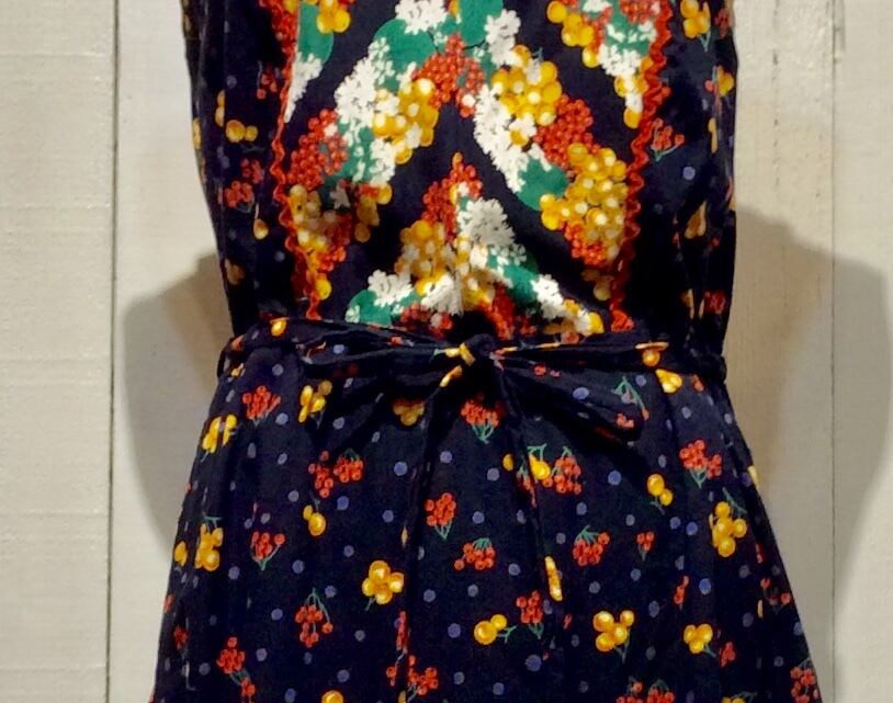ウエスト下に切り替えがあり、ウエスト紐で結ぶ事が出来ます。