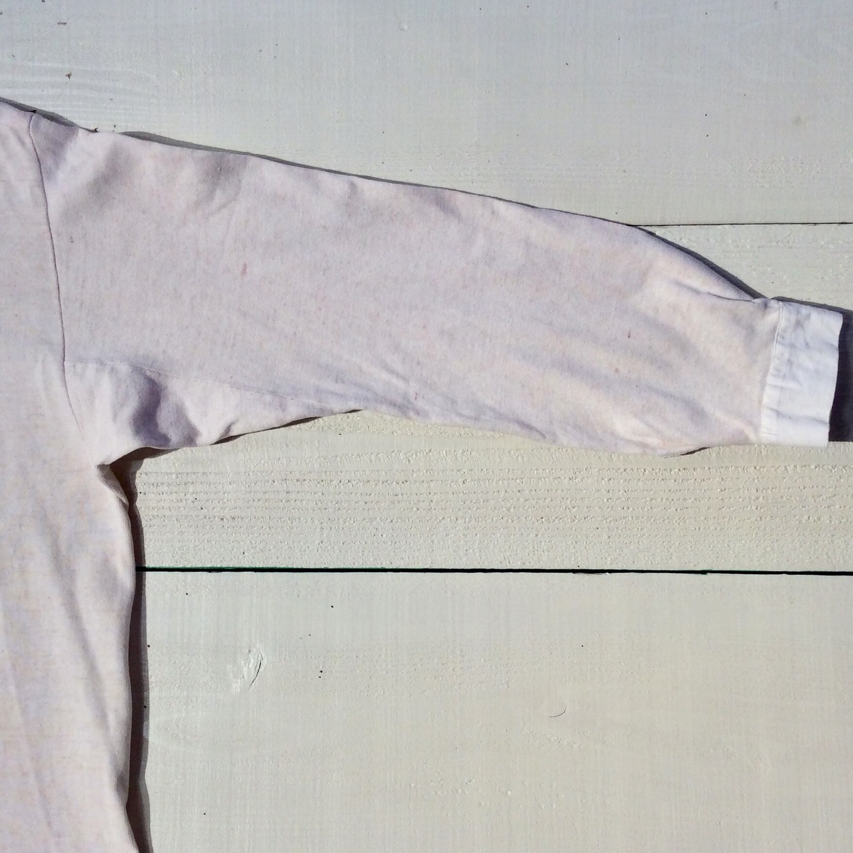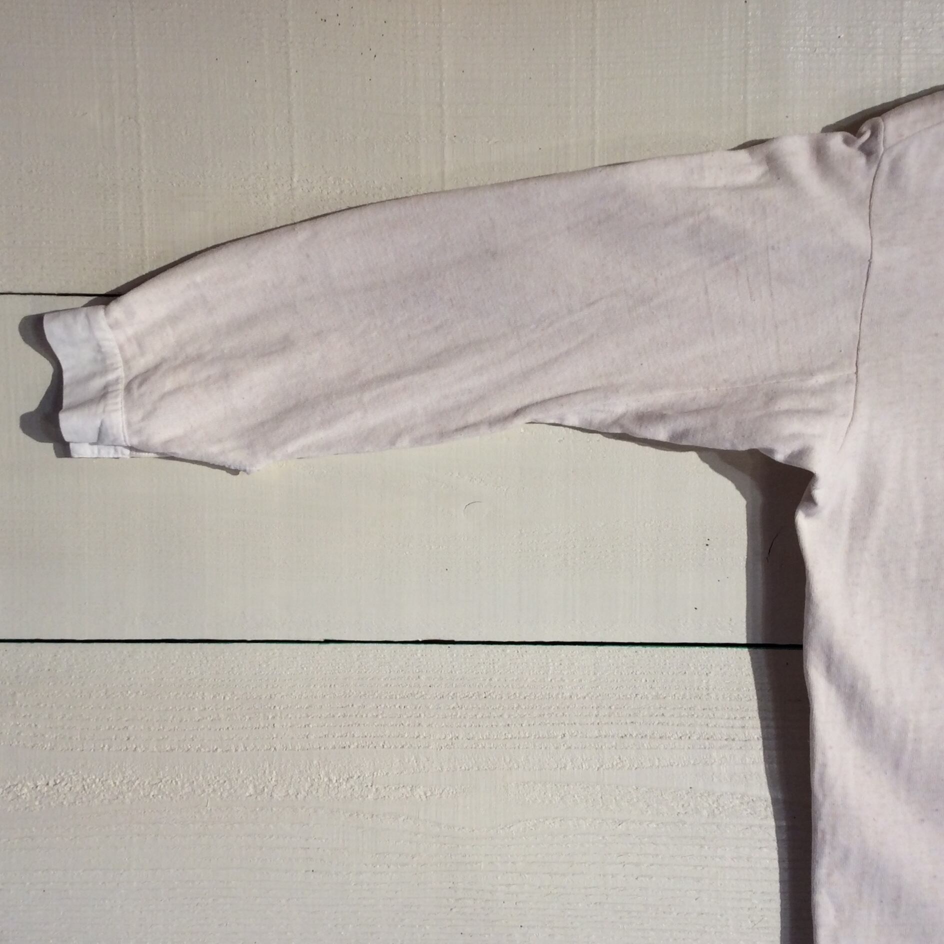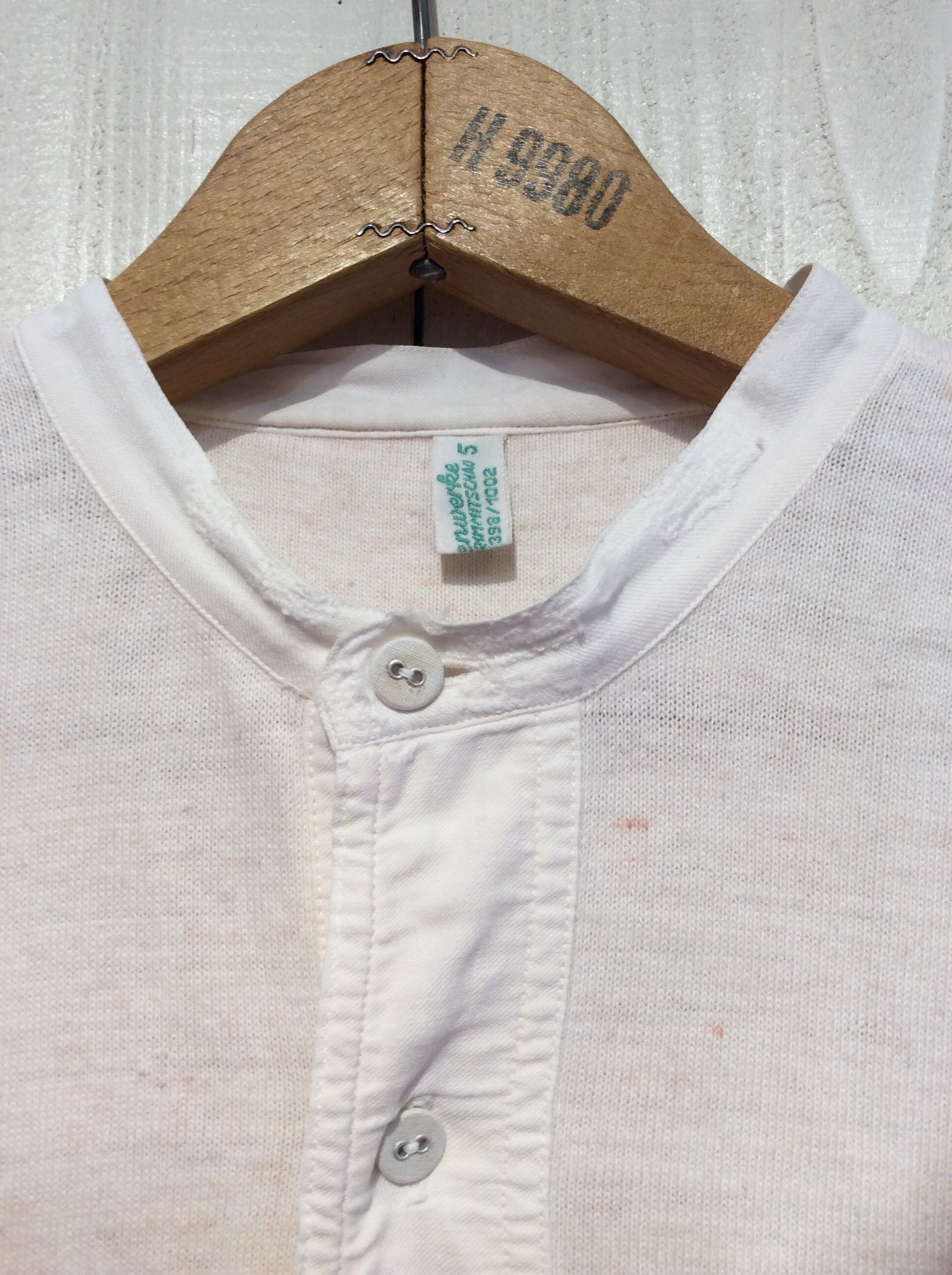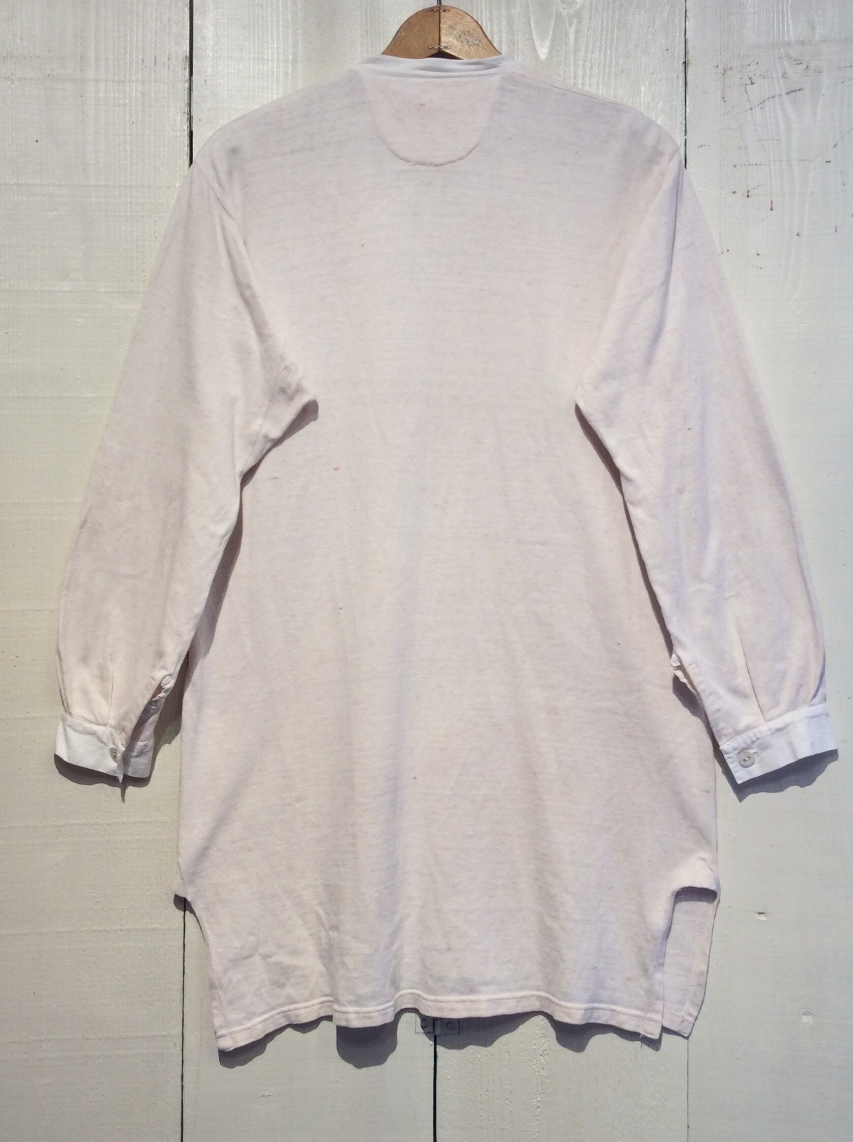 首とヘンリー部分と袖口と包みボタンが白のシャツ生地で