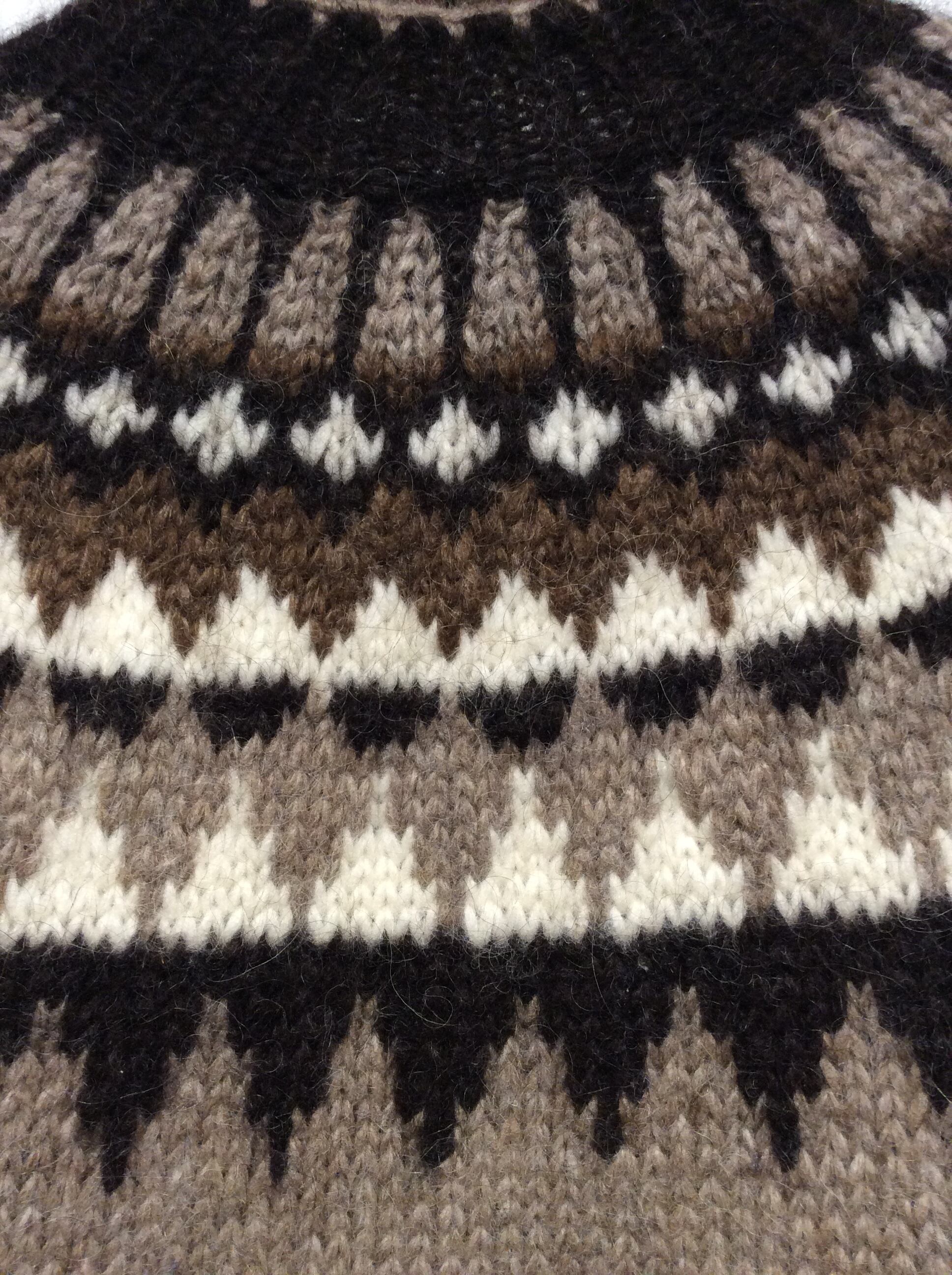 色は、こげ茶・オフホワイト・ブラウン・ベージュの 温かみのある色の毛糸で