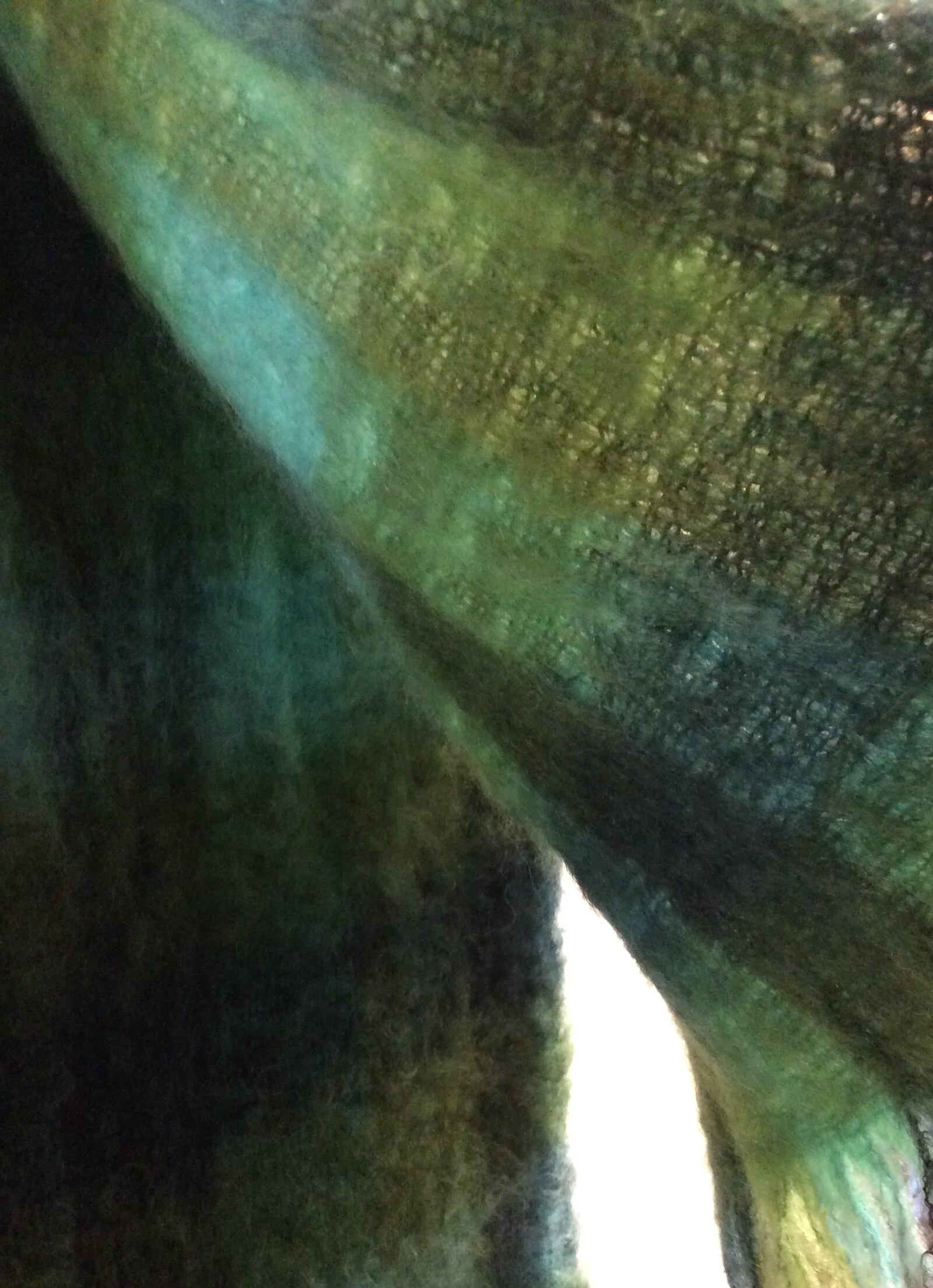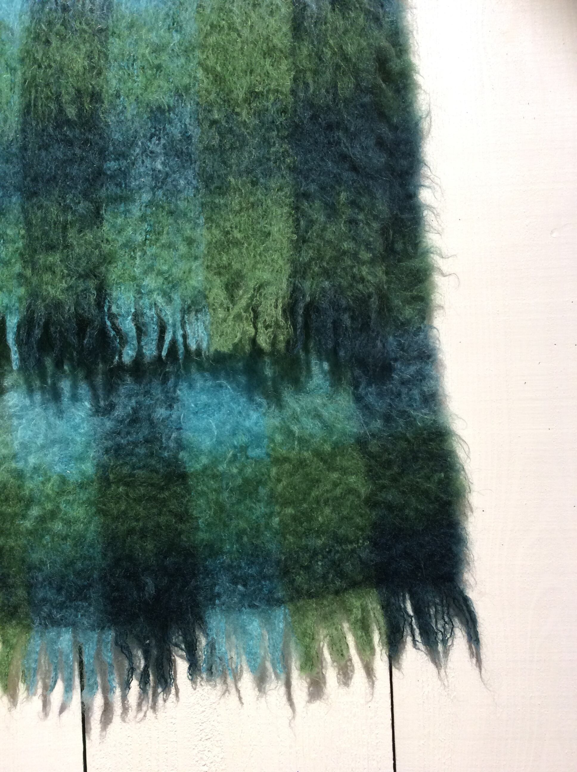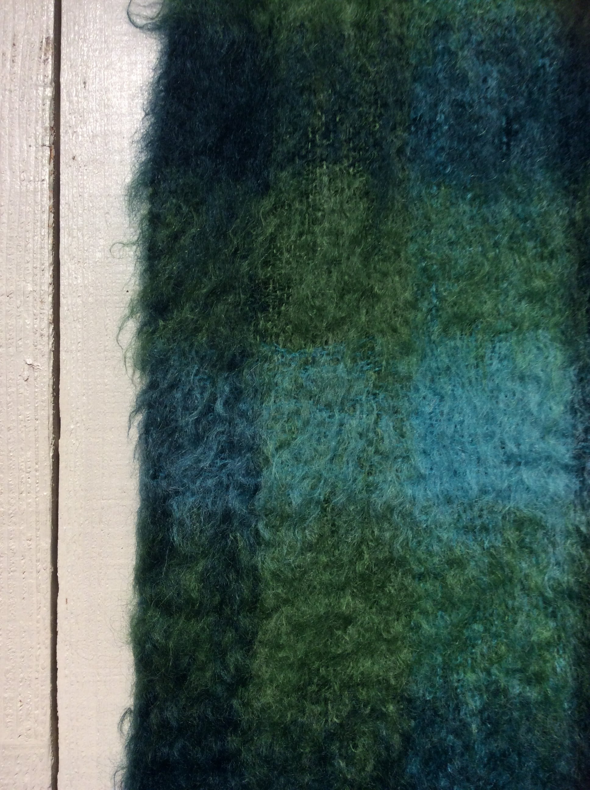 縦横に織られたモヘア毛糸を毛起こししてから、毛を寝かせたものです。