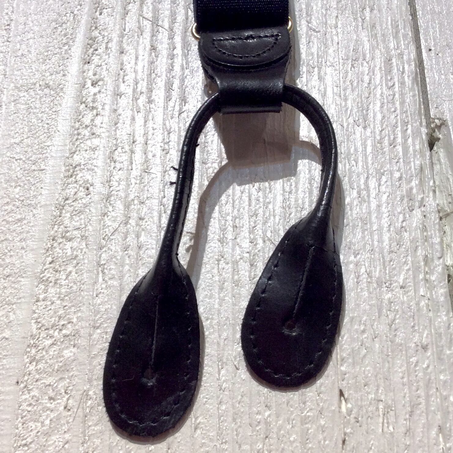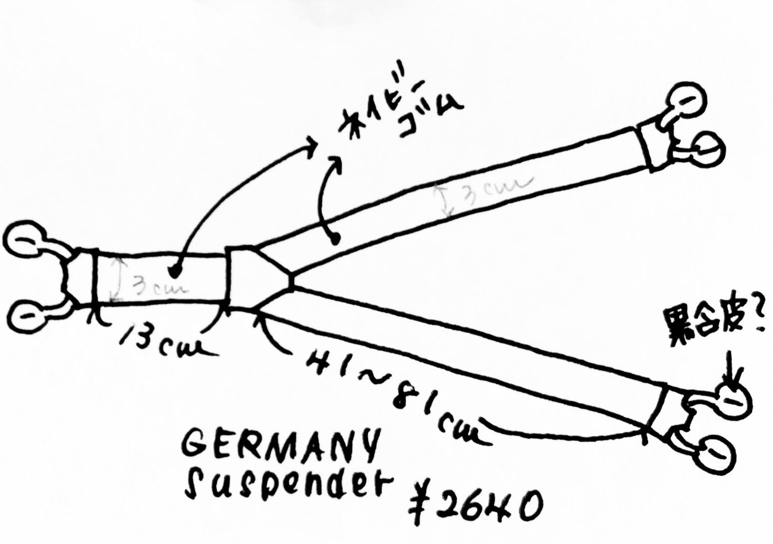 ※後ろのゴム部分がダブルで伸びがしっかりとした固さですが、重いパンツを吊るとゴムが伸び