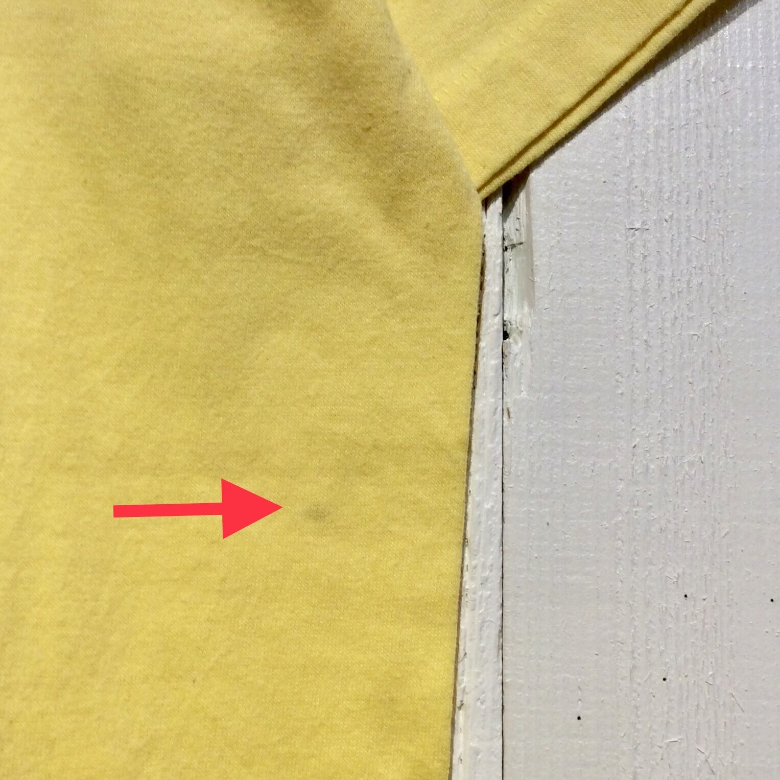写真7枚目、左胸脇に小さく薄い汚れが有ります。