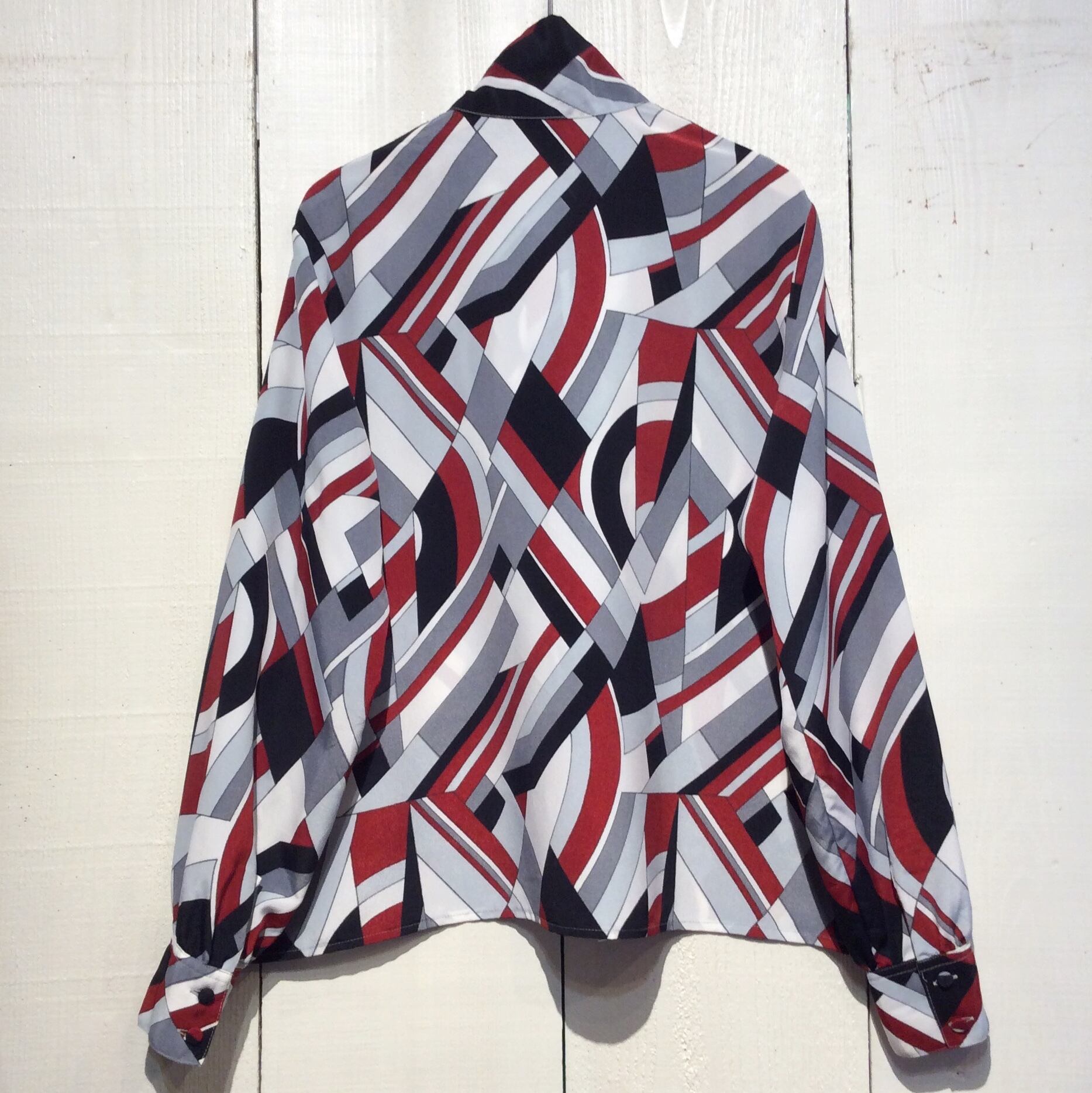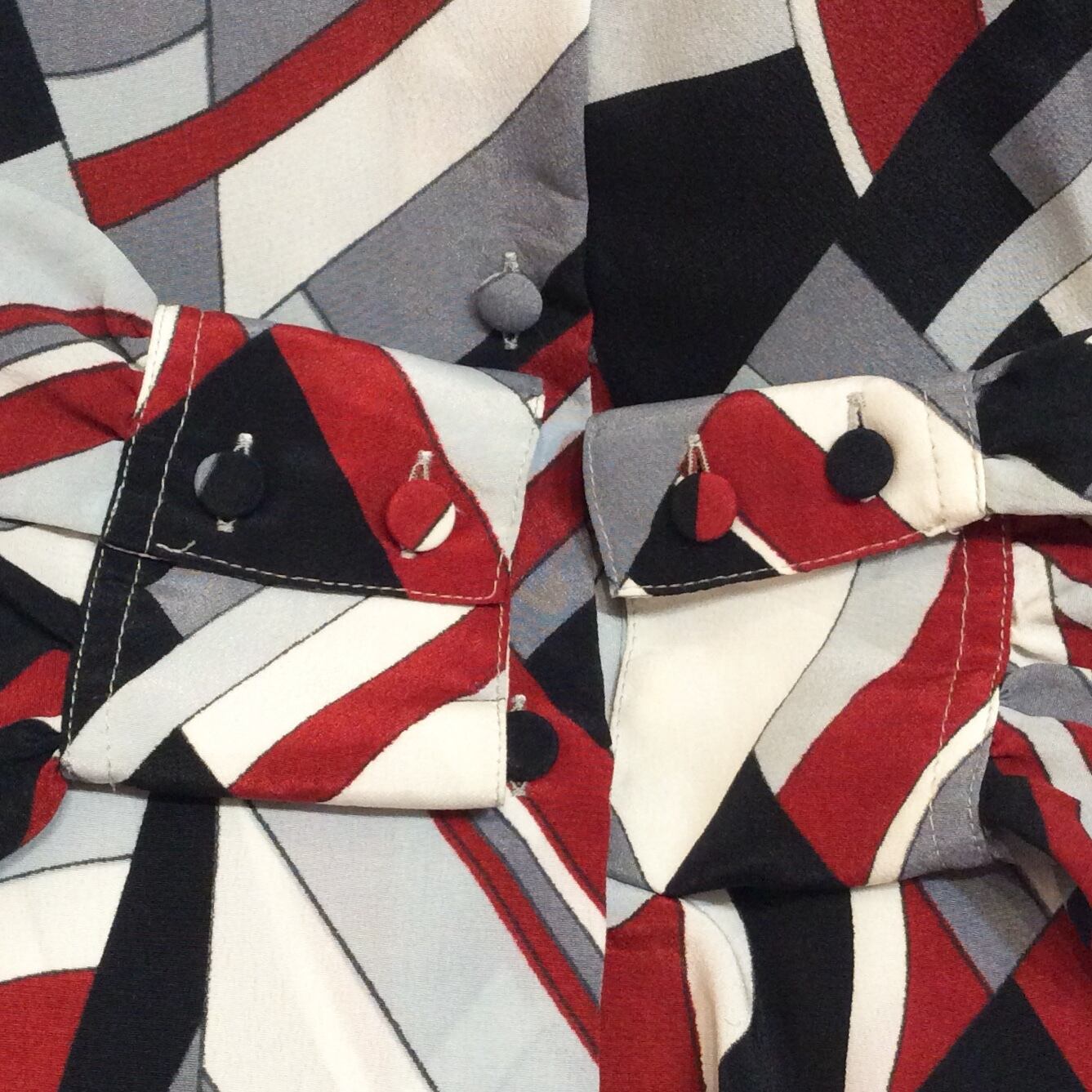 色は、白・グレー・ライトグレー・赤・黒の配色の柄。