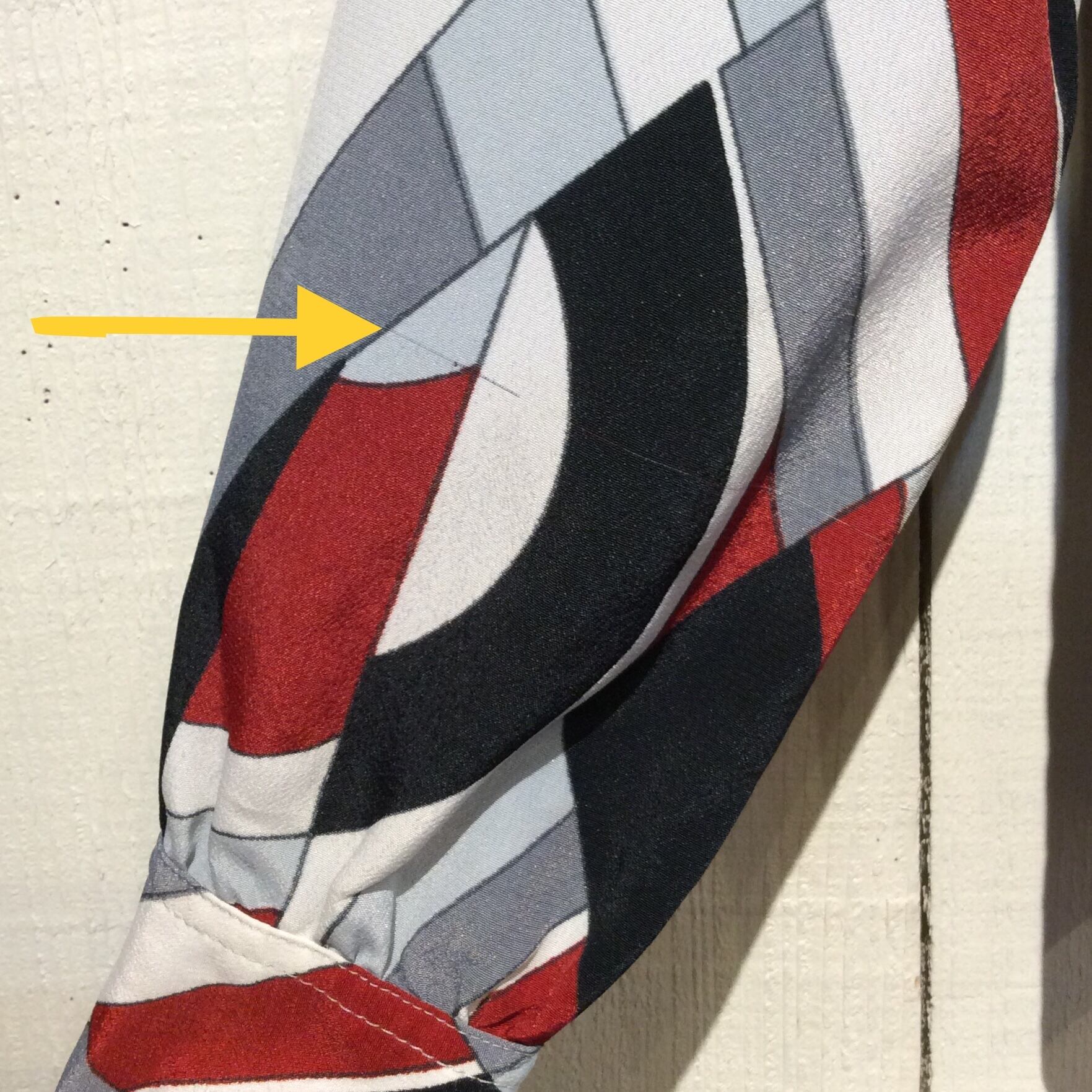 写真12枚目 右袖口上に 糸の引っ張りなどによる線あります。