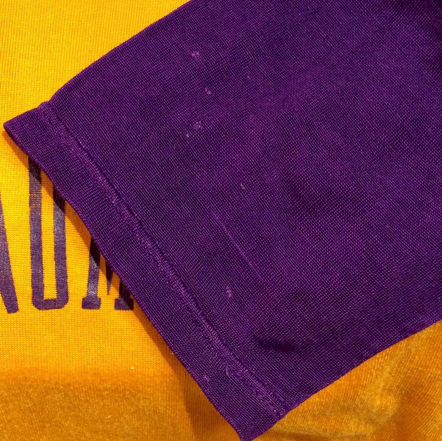 色は、落ち着いた黄色に 袖とトリムが赤みのあるパープル、