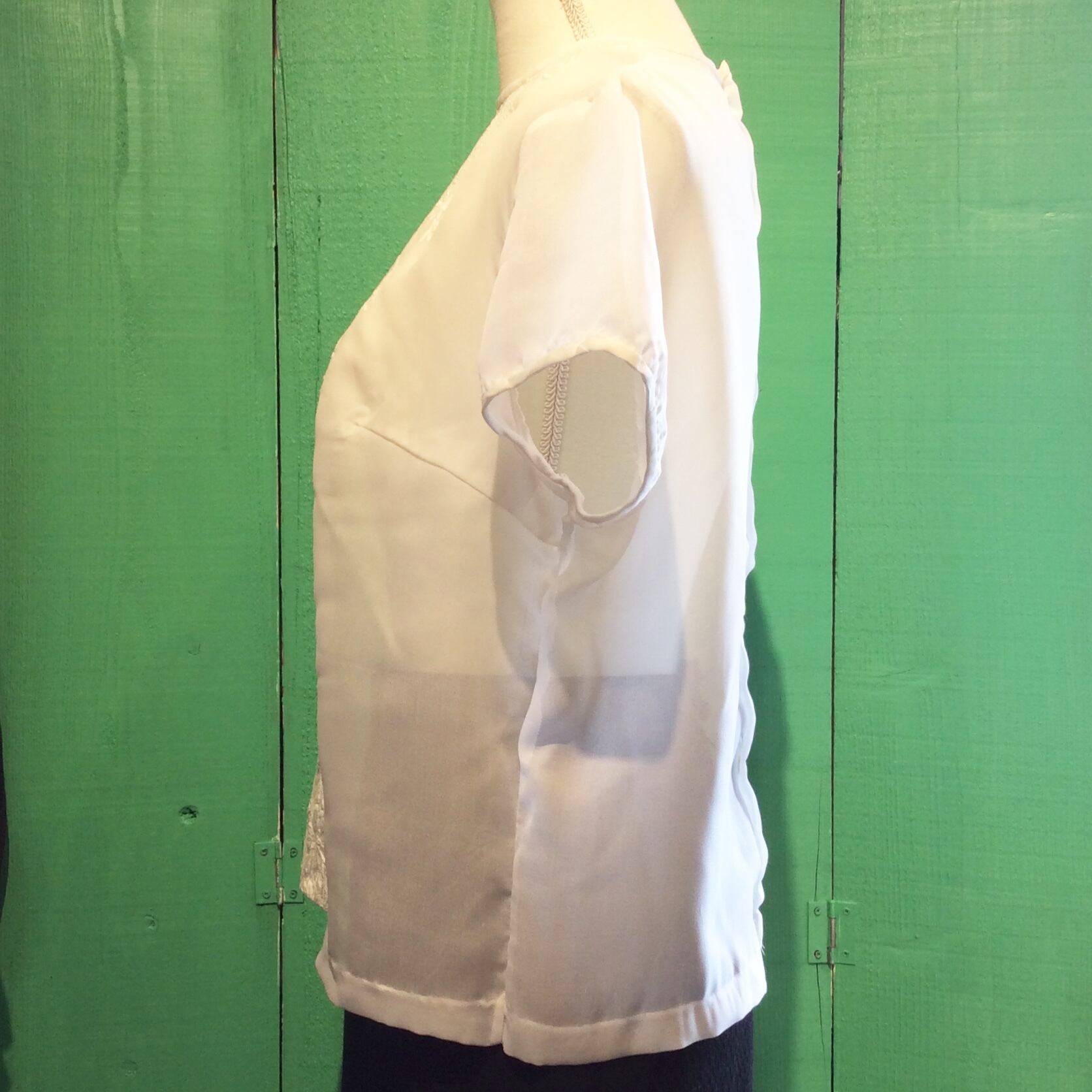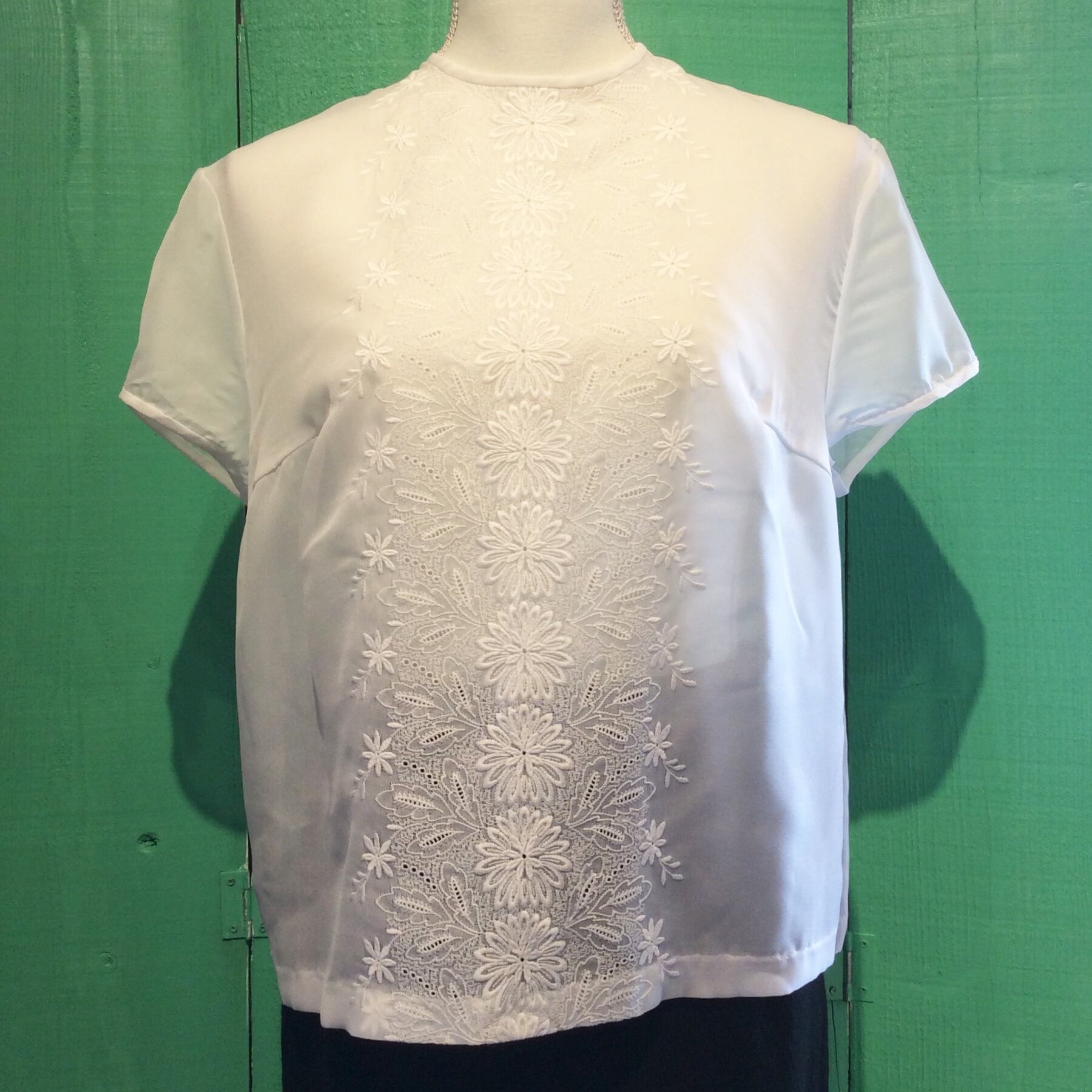 素材は、ポリエステルの薄手でソフトなジョーゼットのブラウス生地です。