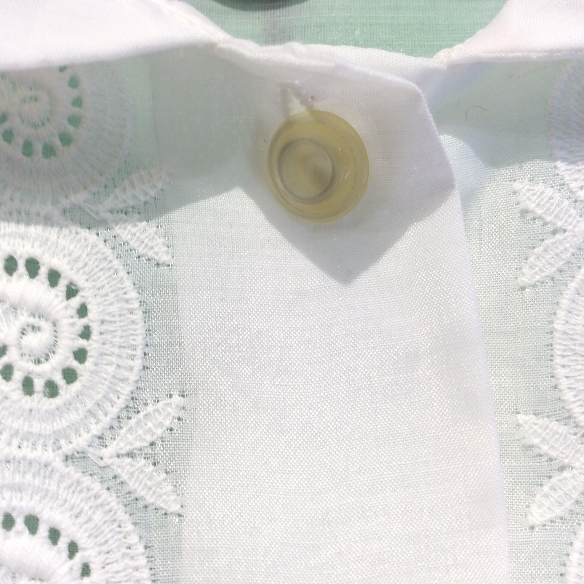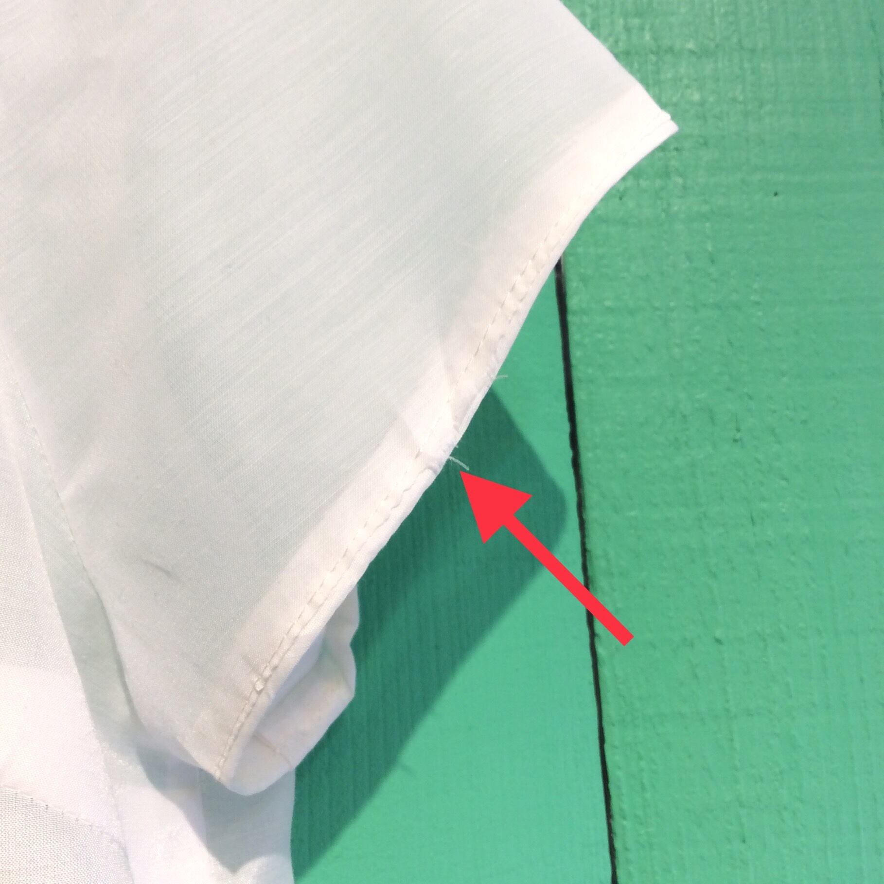 写真12枚目、左袖口のステッチ縫い目に、生地のはみ出しがあります。