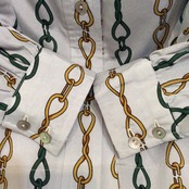色は、ライトグレーに深緑とマスタードカラーの柄。