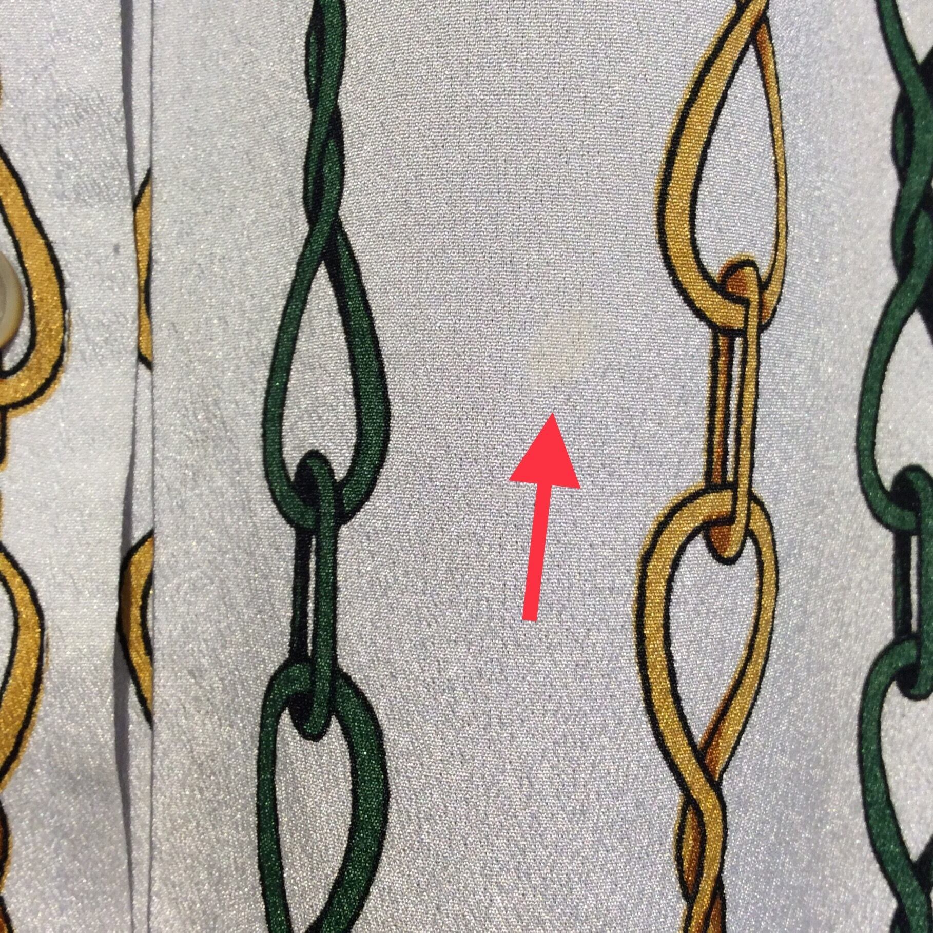 写真10枚目、前ボタン脇に小さな薄く目立たないシミ