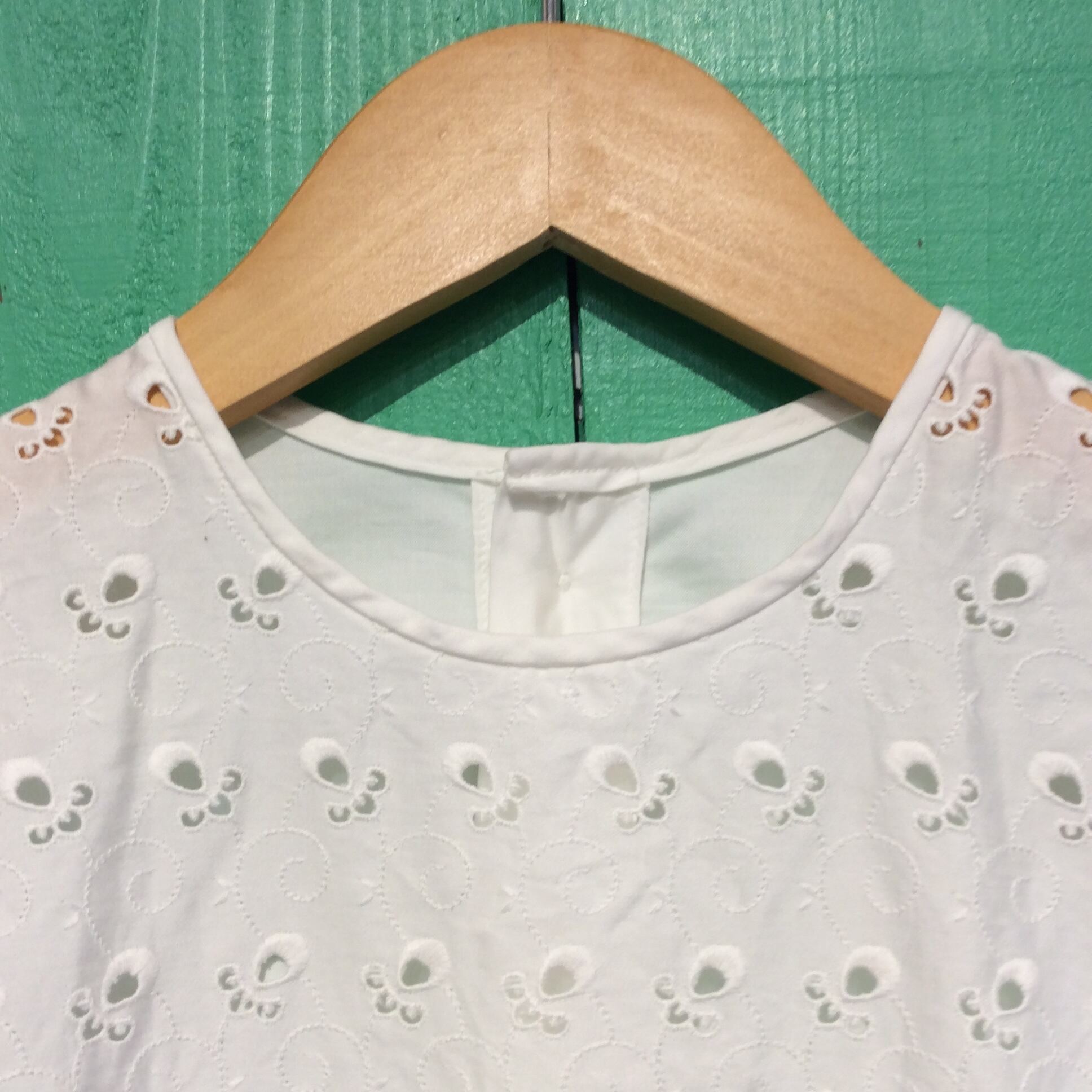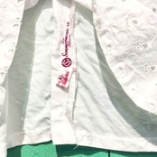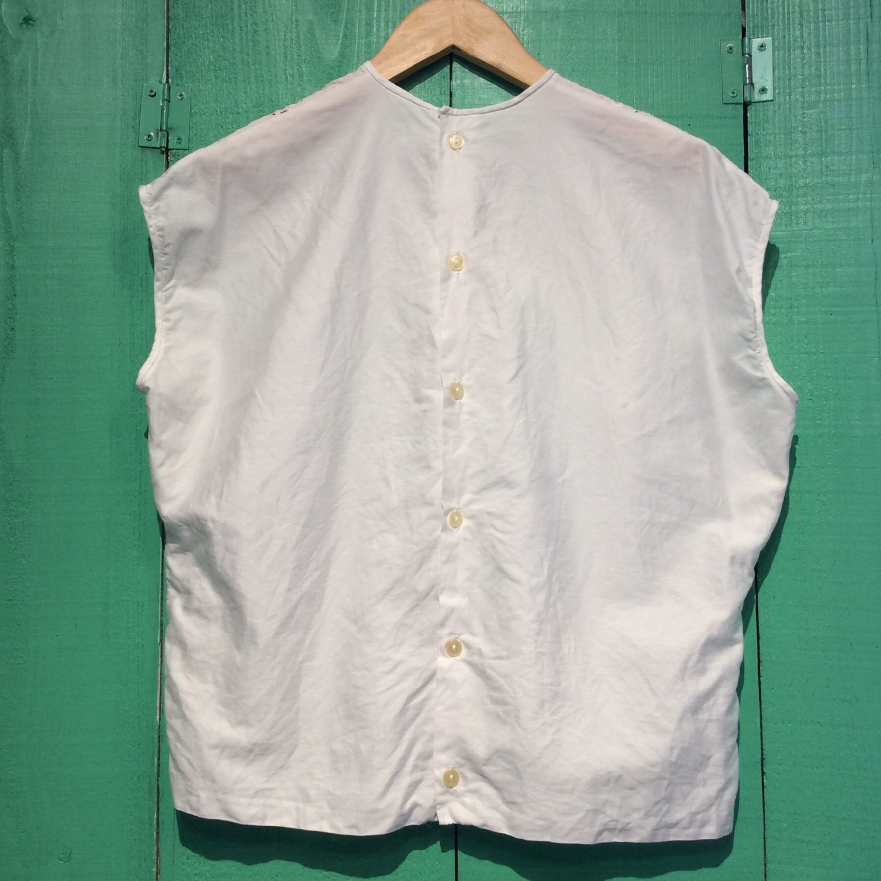 後ろボタンのブラウスは、上のボタン2つくらいを開けて、下から着ると楽に着れます。