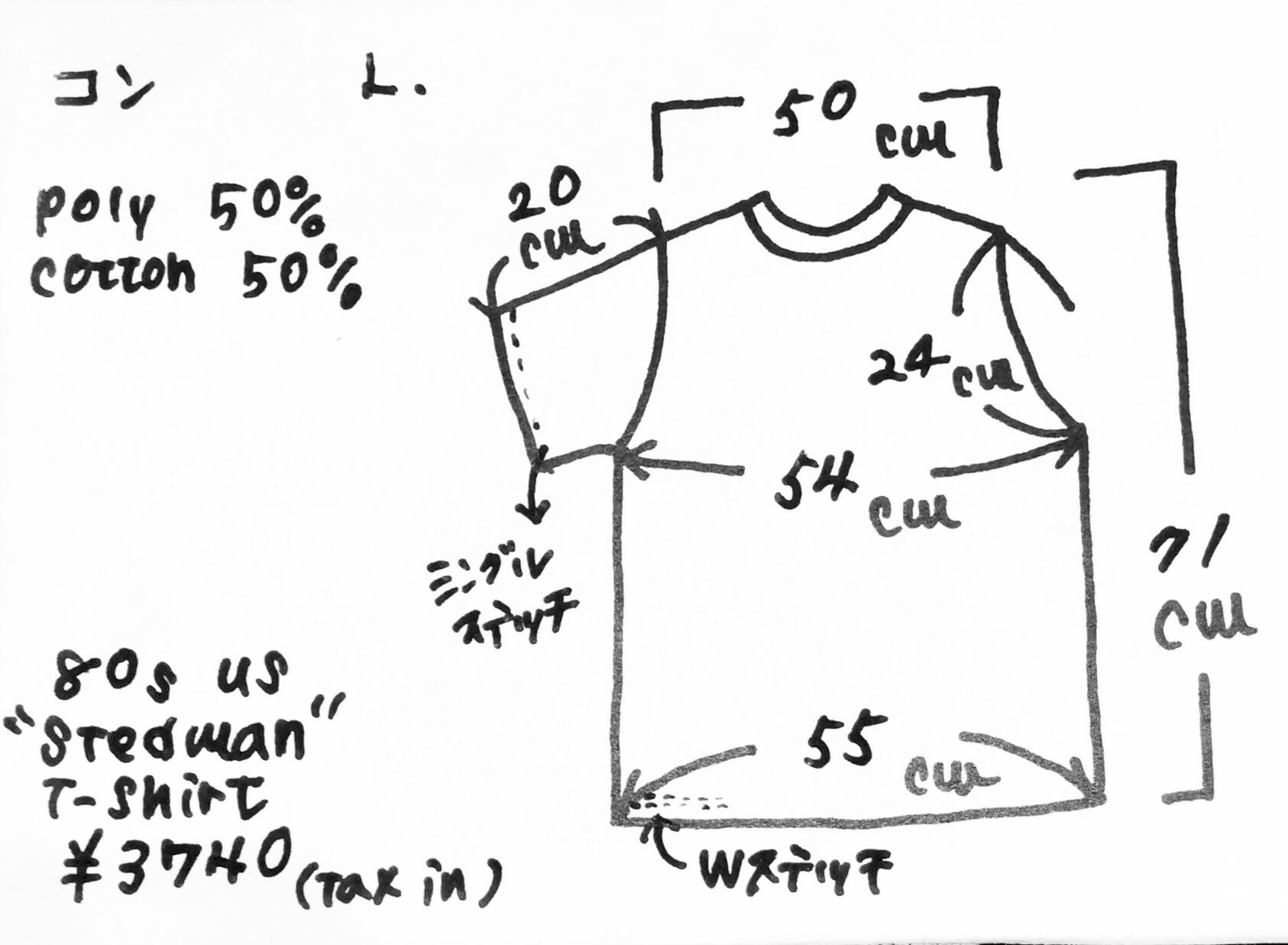 袖口はシングルステッチ、裾はダブルステッチです。