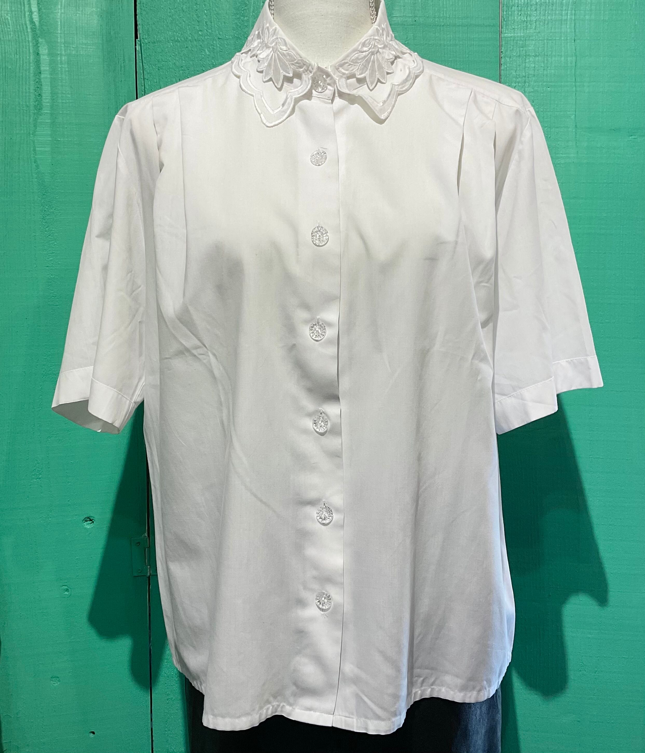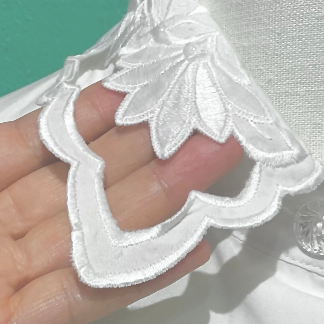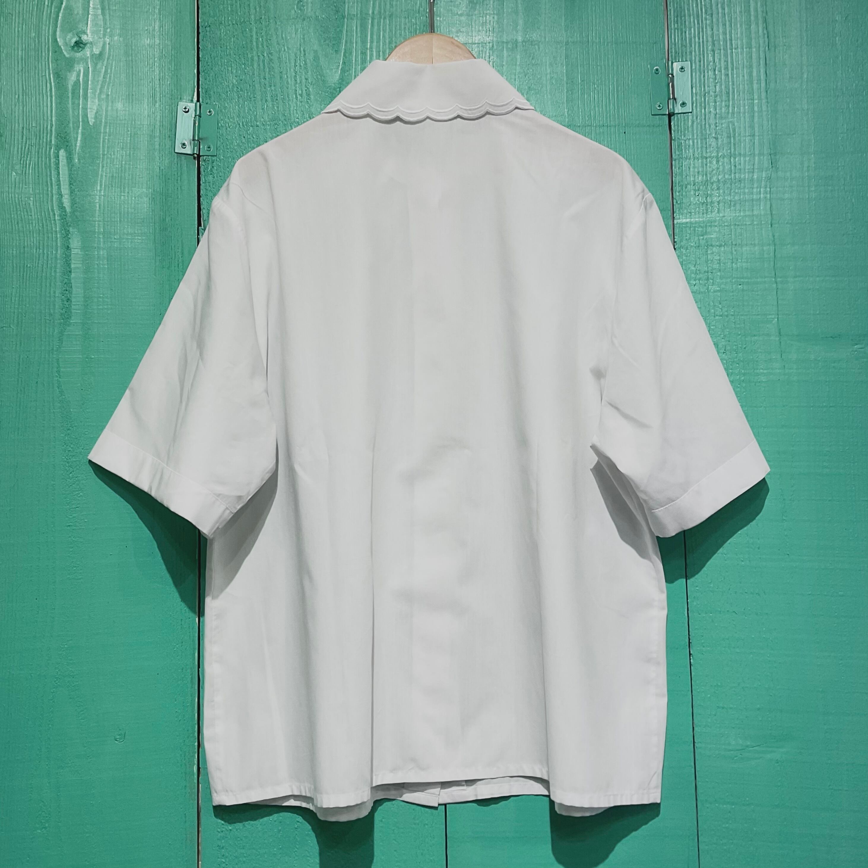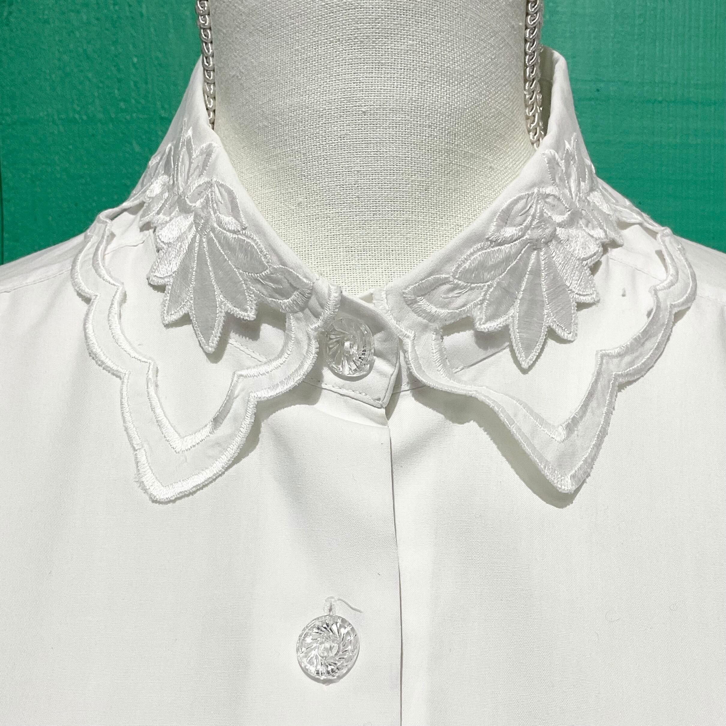 カットワークの様なエリが素敵なブラウスです。
