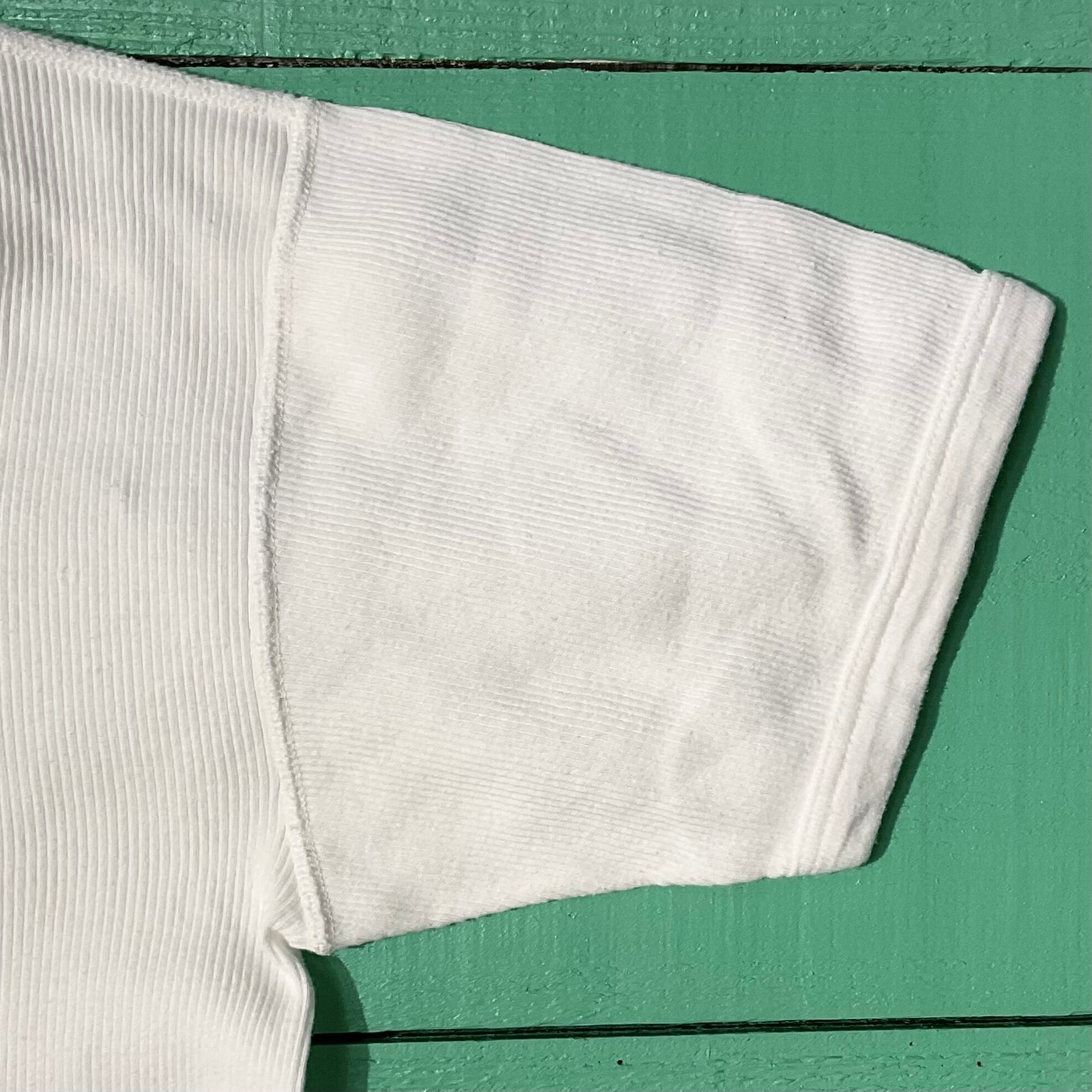 身幅で横に18センチ収縮性のある、フライス編みの生地です。